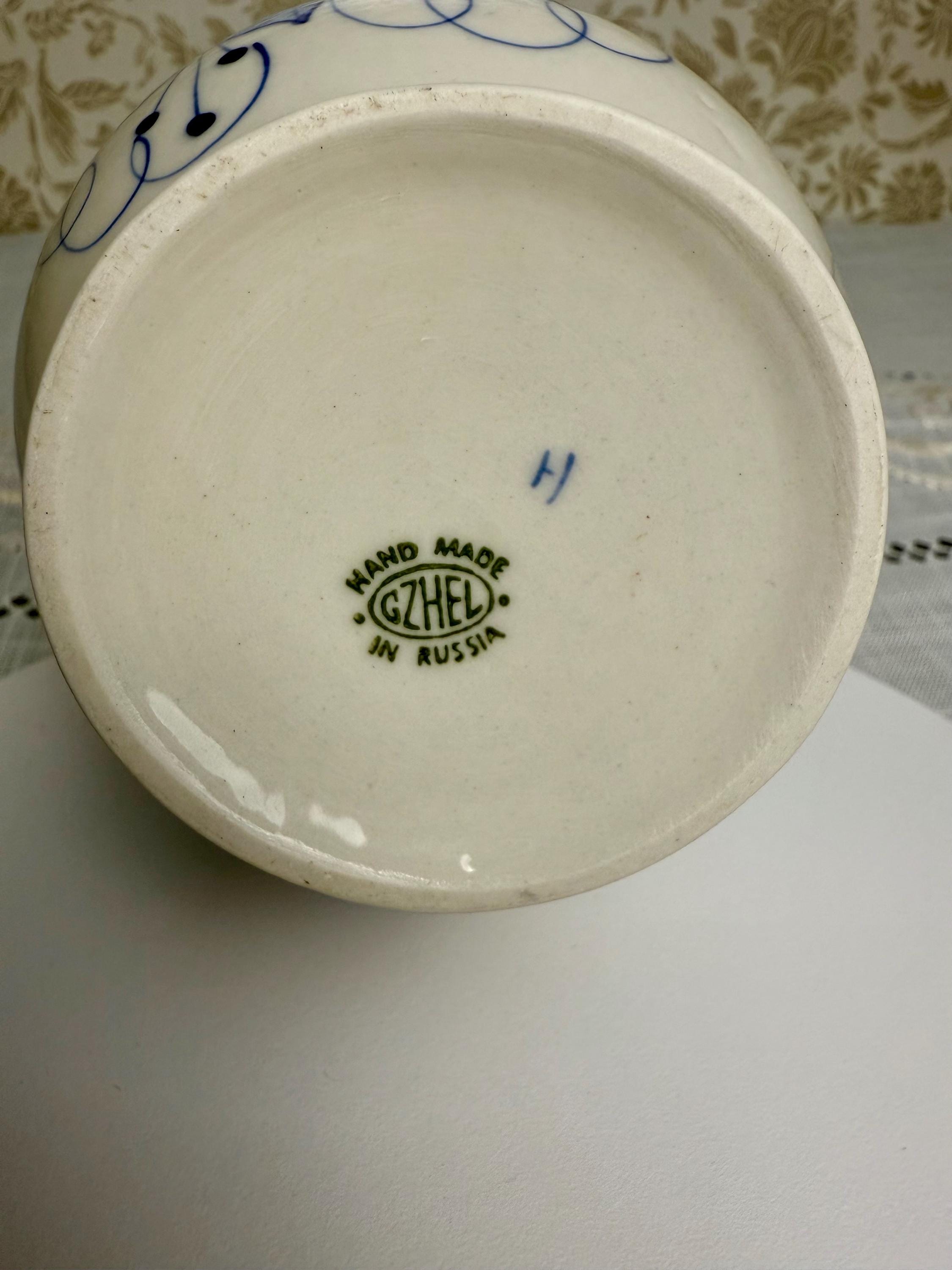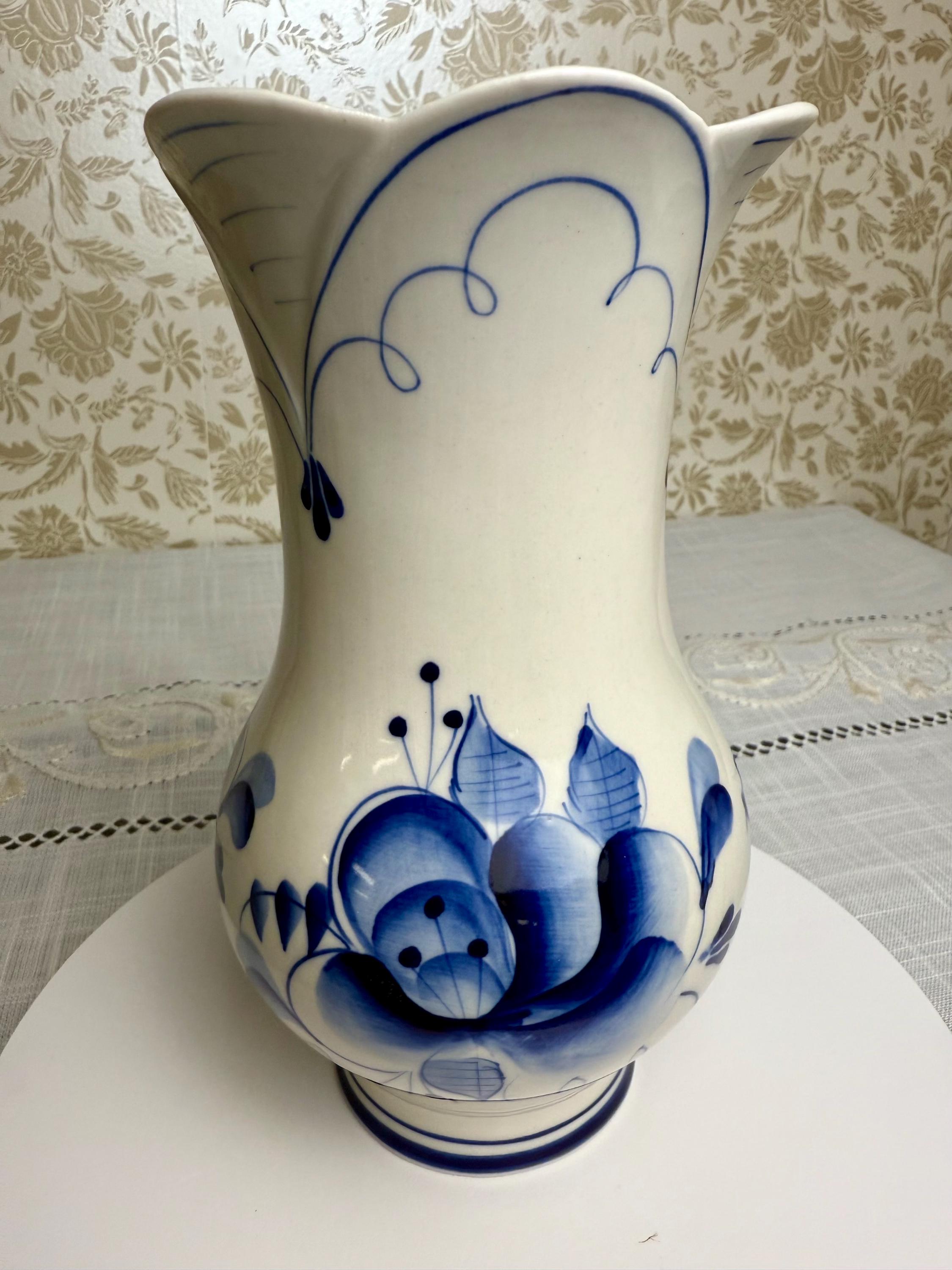 The elegant flared shape and hand-painted details reflect Gzhel’s centuries-old tradition of blue-and-white ceramics, making this a stunning piece for collectors or lovers of Russian folk art.