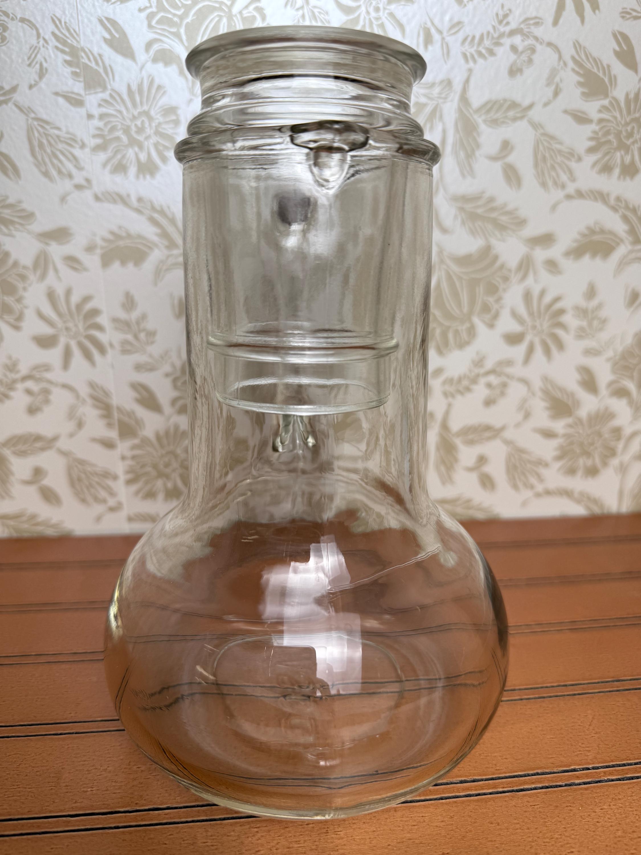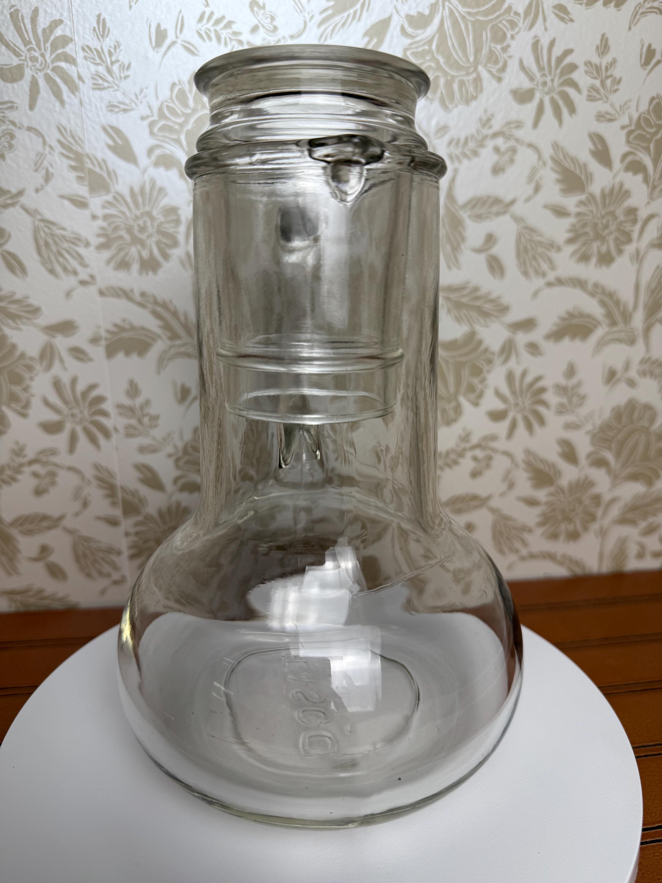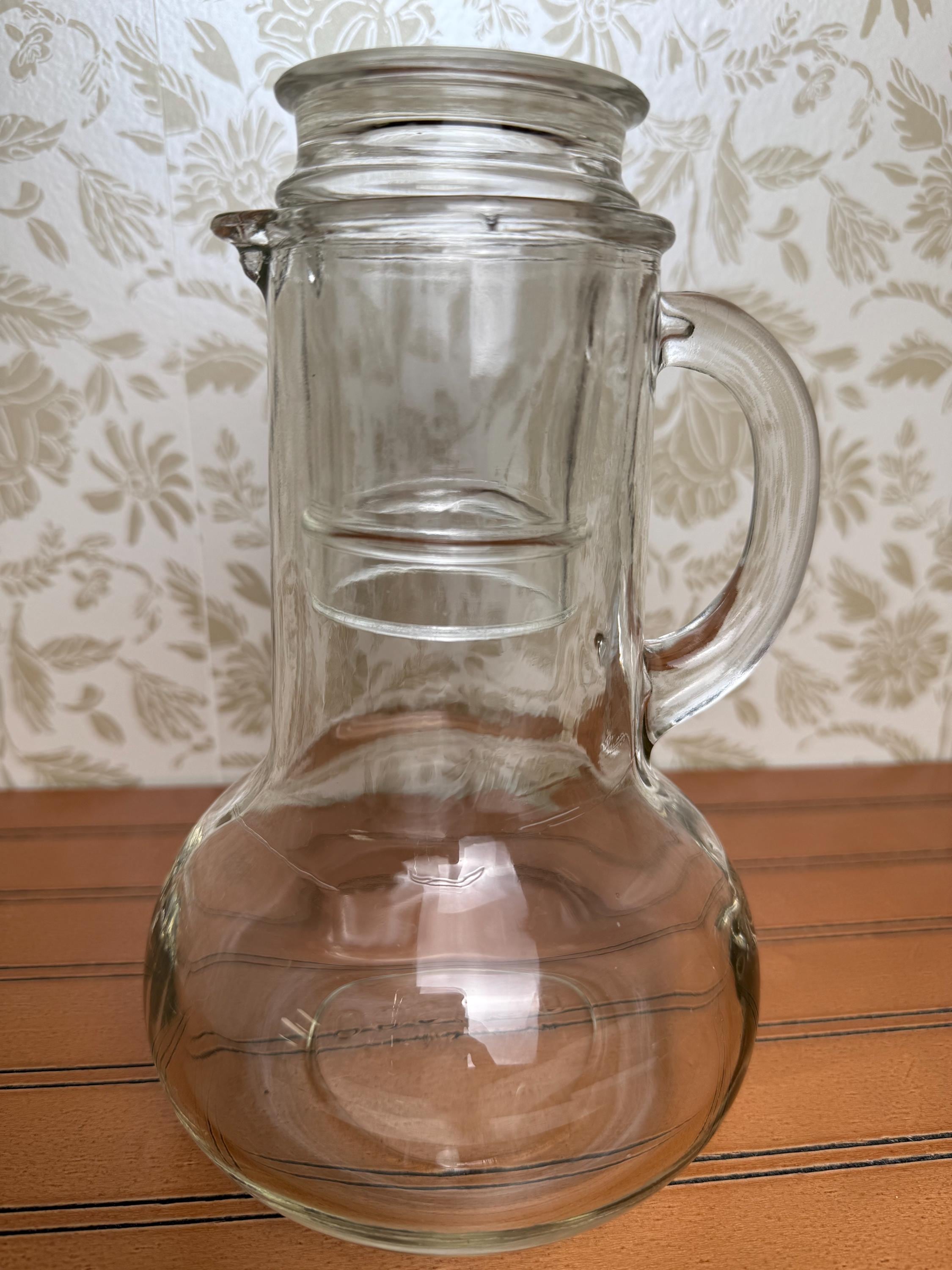 I was immediately drawn to this pitcher’s clean lines and authentic mid-century design. There’s something comforting about the simplicity and utility of vintage glassware, and I love how versatile this piece is—equally at home in a modern kitchen or as part of a retro collection. One of my favorite ways to use it is in a guest bedroom, filled with fresh water. It’s such an elegant alternative to a plastic bottle and makes guests feel extra cared for. I personally select items like this because they carry a story and add character to any space.