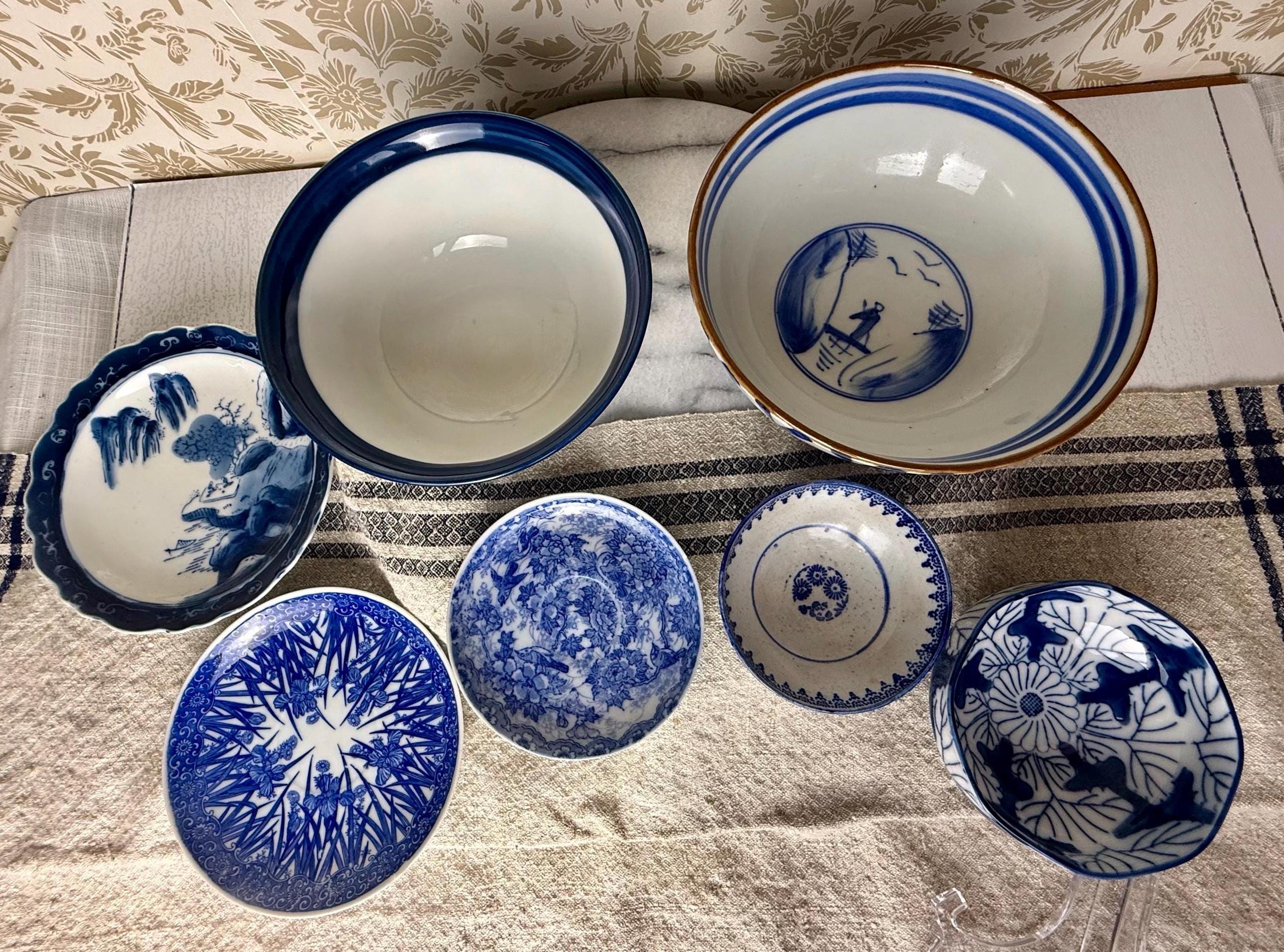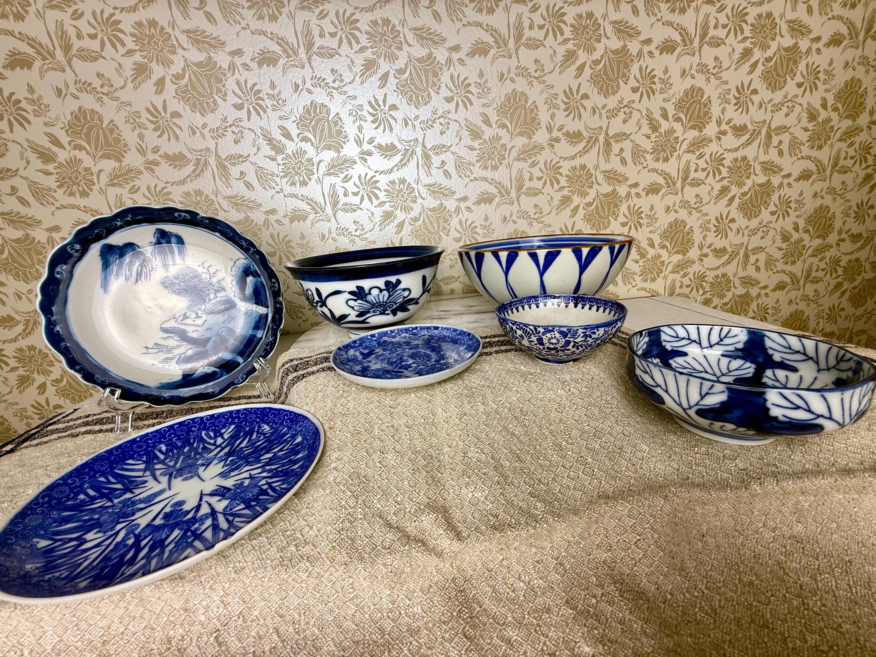 • Origins: Japan (Arita ware, sometsuke, mingei folk pottery, export wares) & one English-style transferware piece