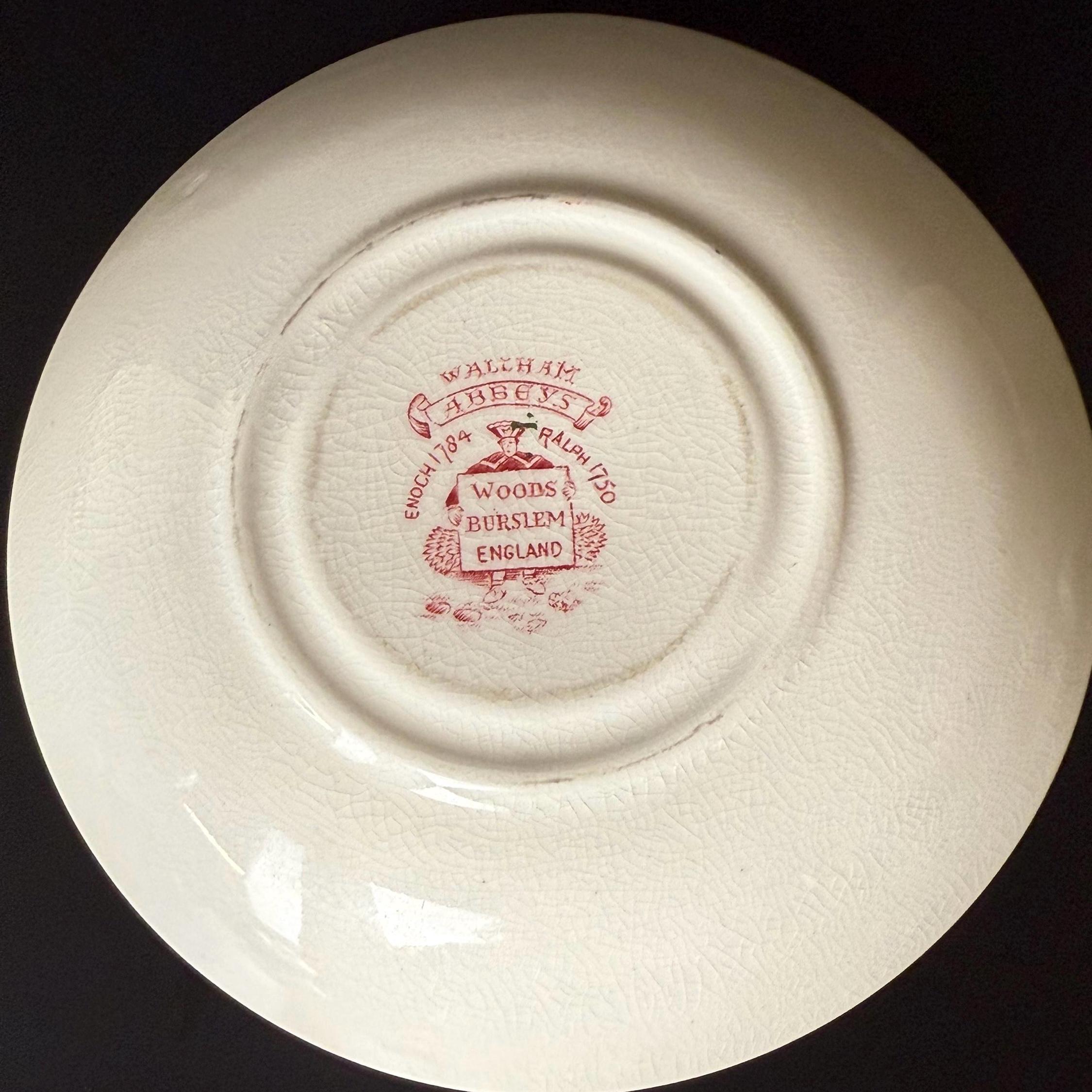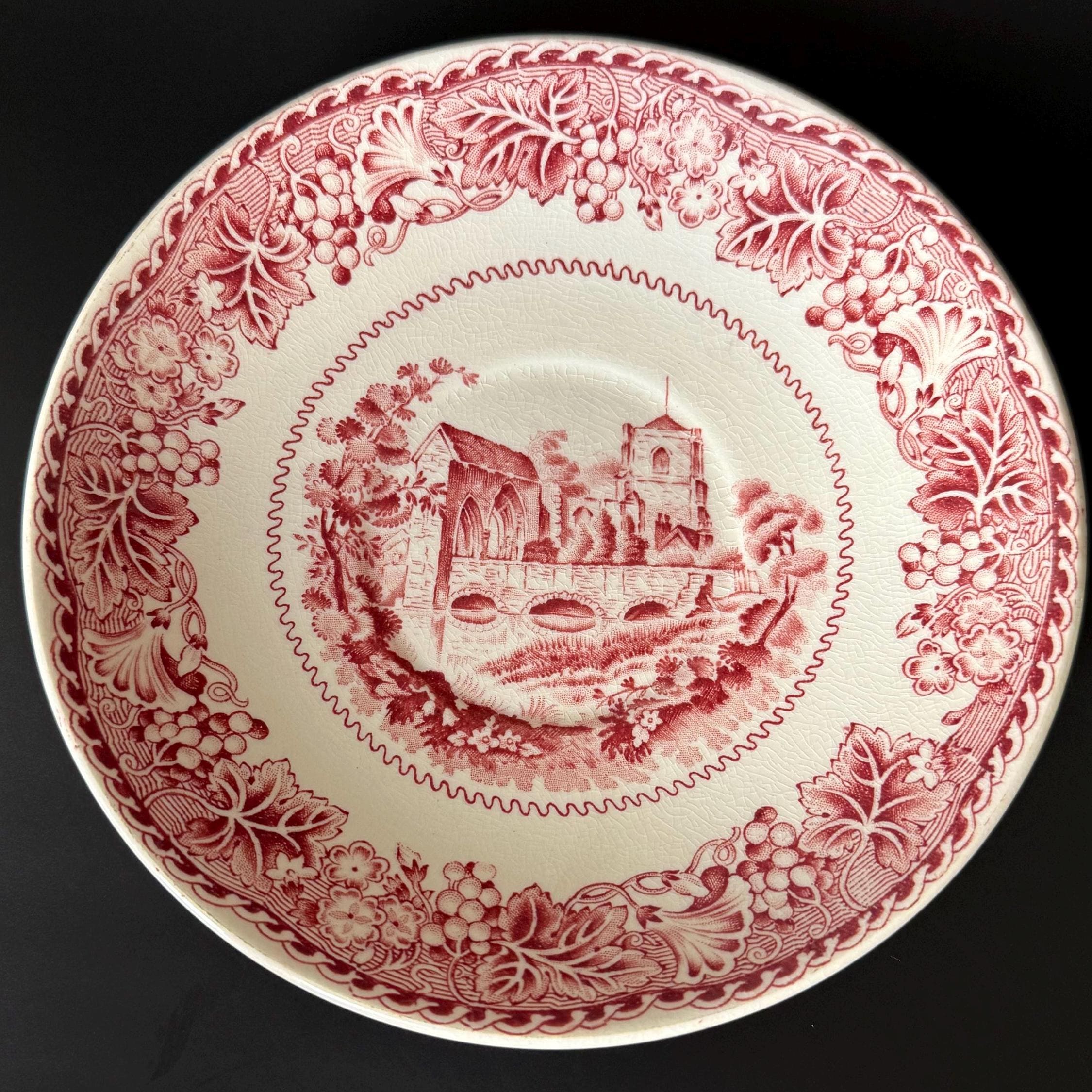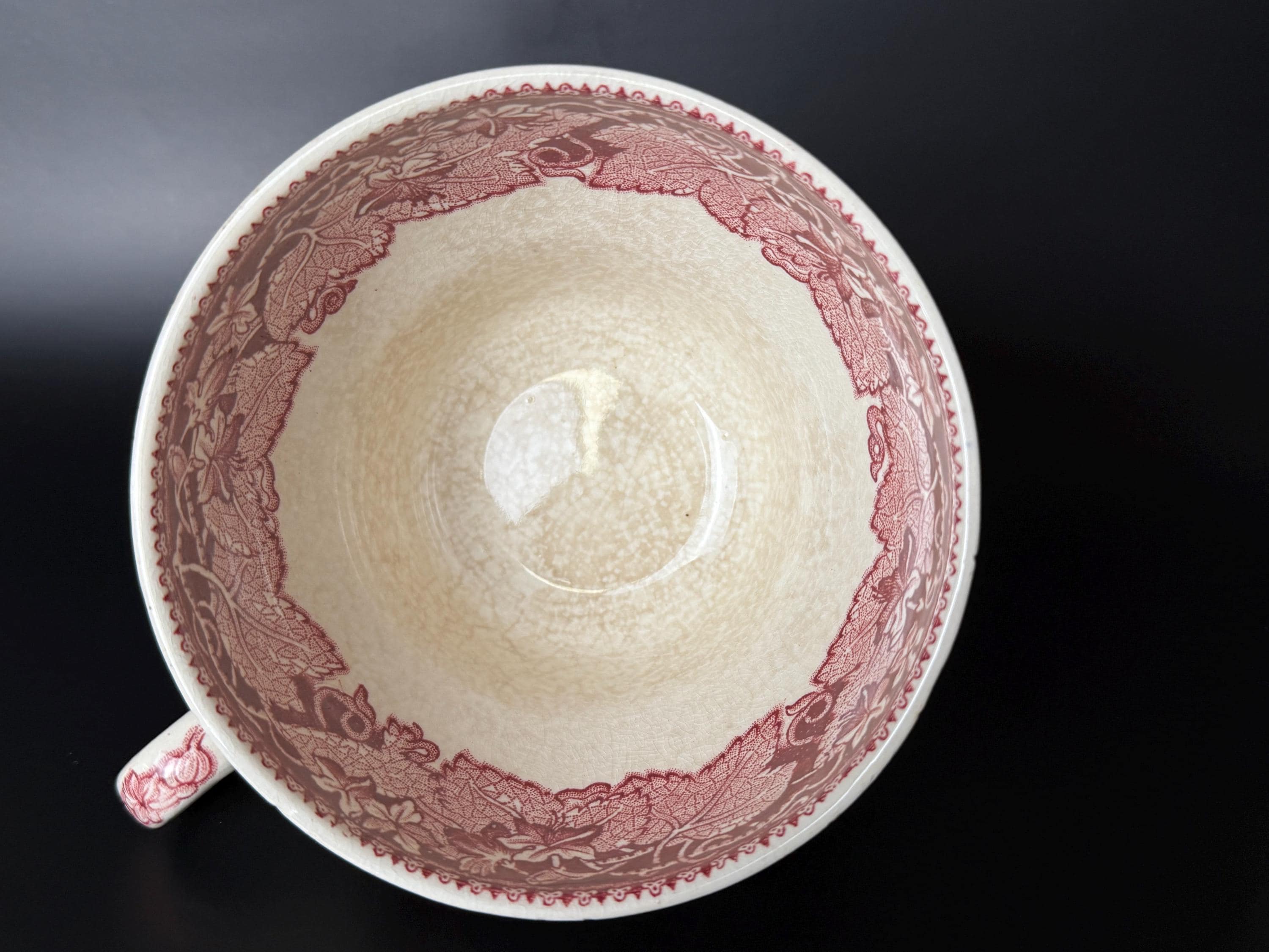 The moment I saw them together, I knew they belonged side by side. The rich red transferware, though created nearly a century apart, looks seamless together — as if these two pieces have been waiting to be reunited. The oversized scale of the cup makes it a showstopper, and paired with the Woods plate, they feel like a curated display straight out of a historic English kitchen.