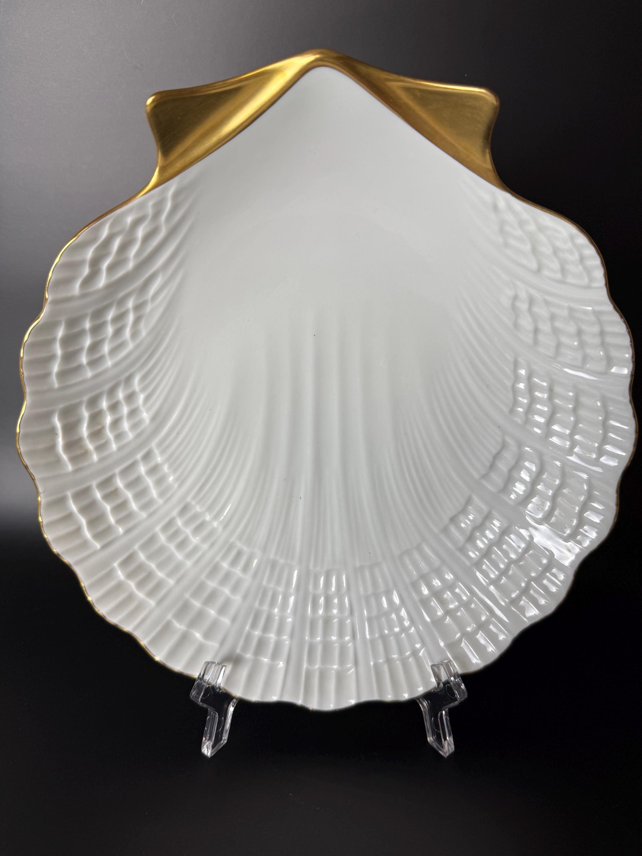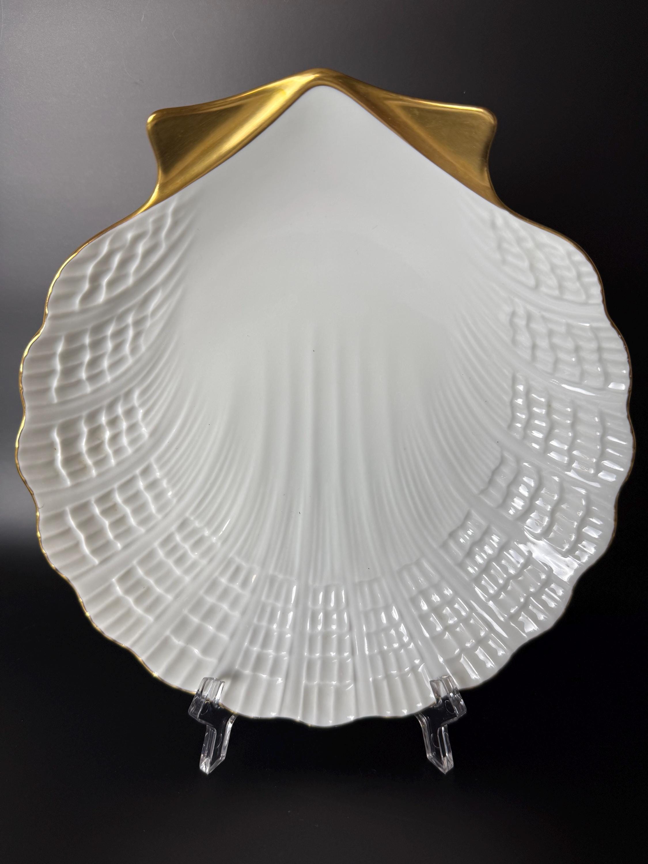 Limoges, France, became a porcelain capital in the late 18th century thanks to the discovery of kaolin clay nearby — the essential ingredient for fine hard-paste porcelain. By the 19th century, Limoges was producing some of the world’s most coveted porcelain, prized for its strength, translucence, and delicate artistry. Shell-shaped dishes with gilt trim, like this one, were popular decorative items that reflected both luxury and natural beauty.