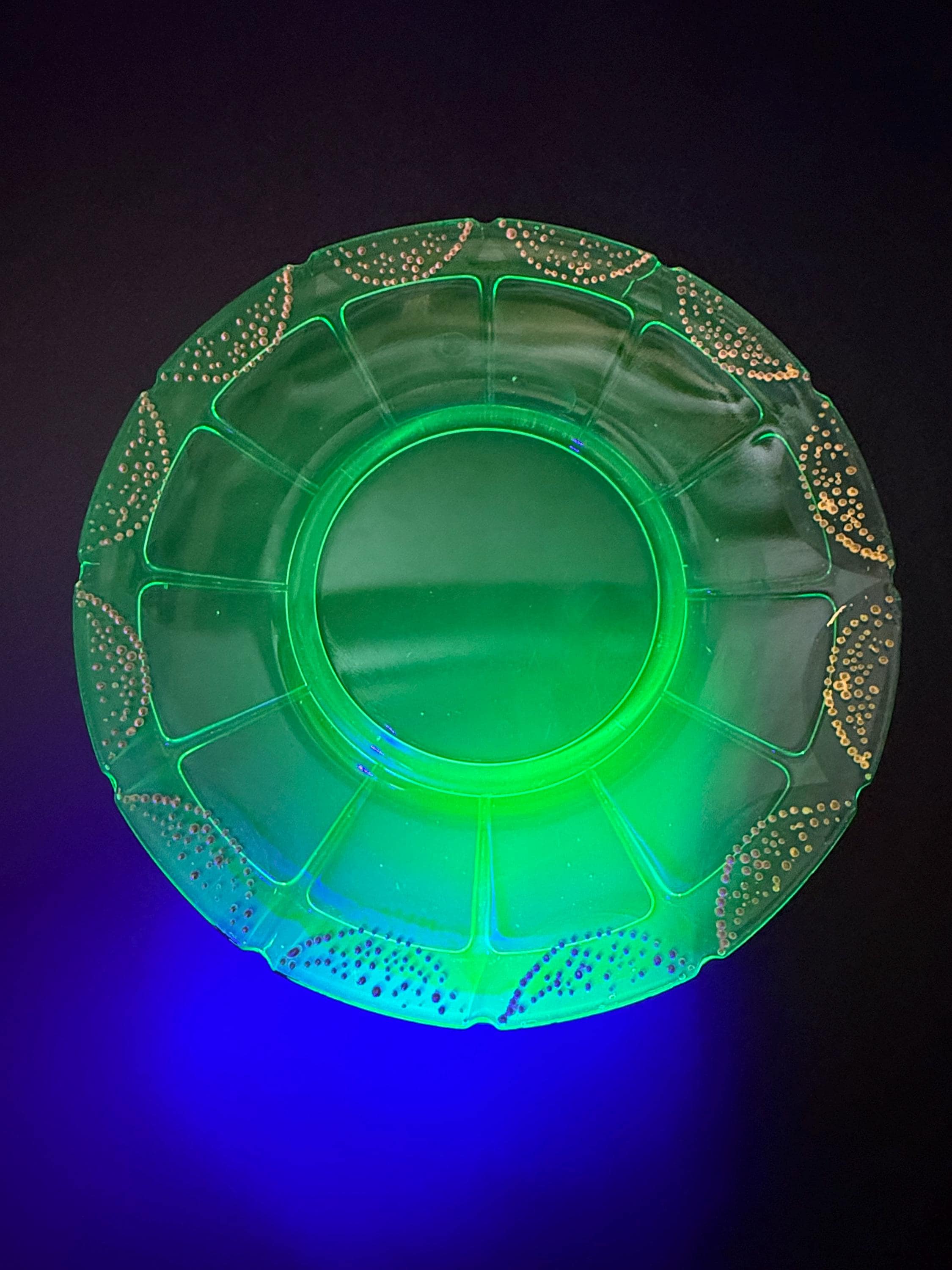 • Depression-Era Uranium Glass Dish (approx. 8.25”)
