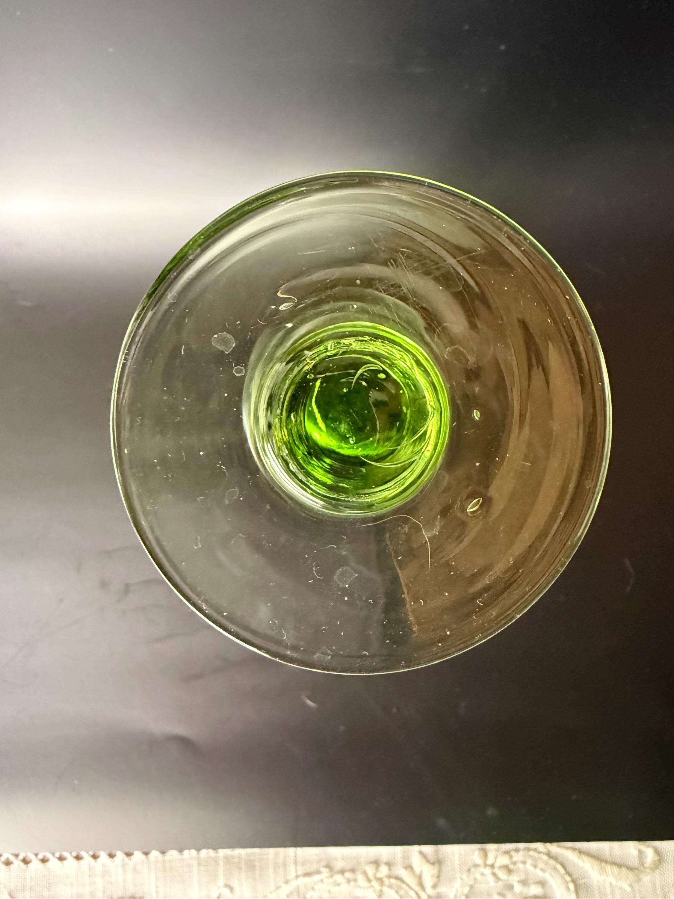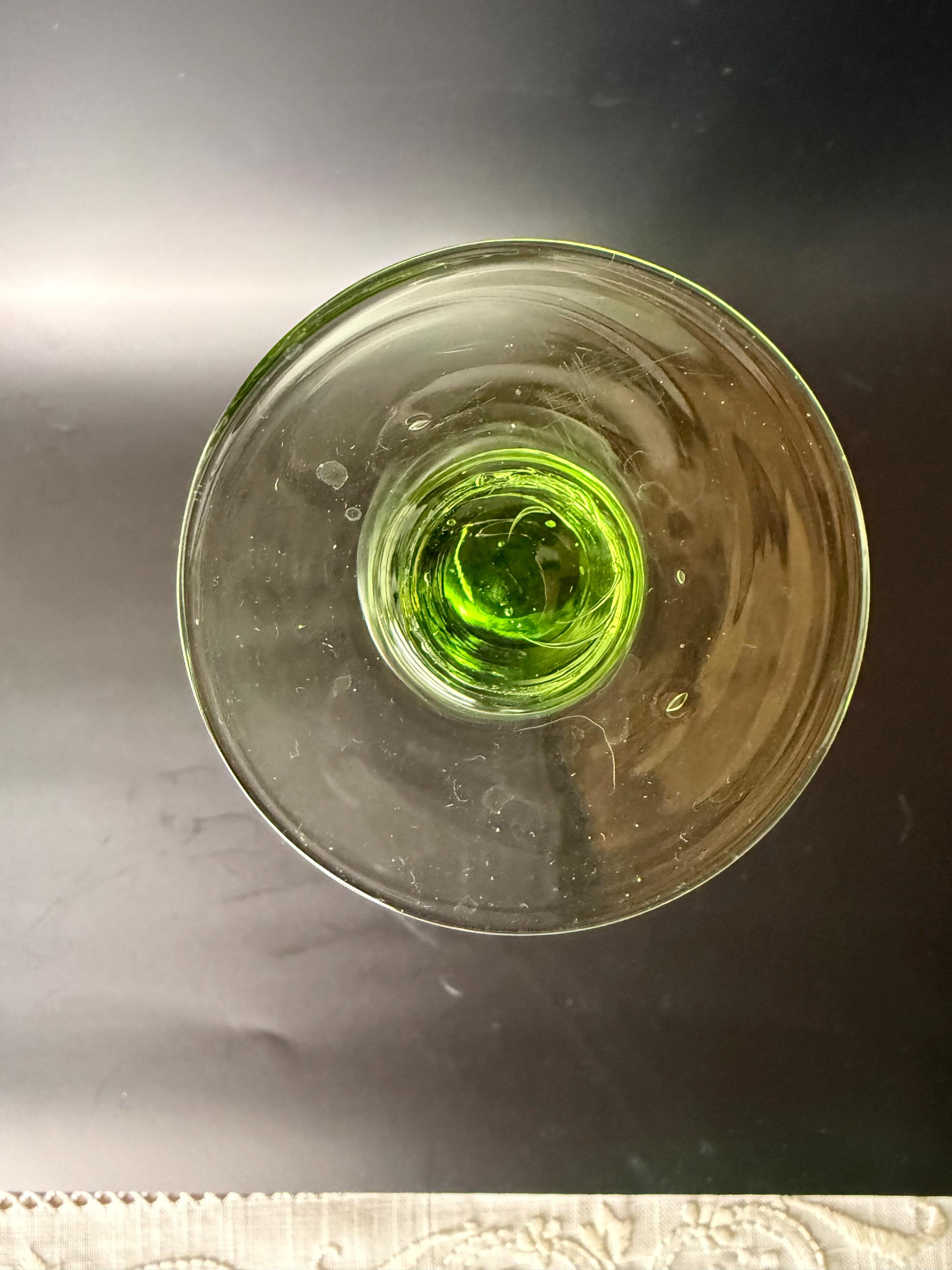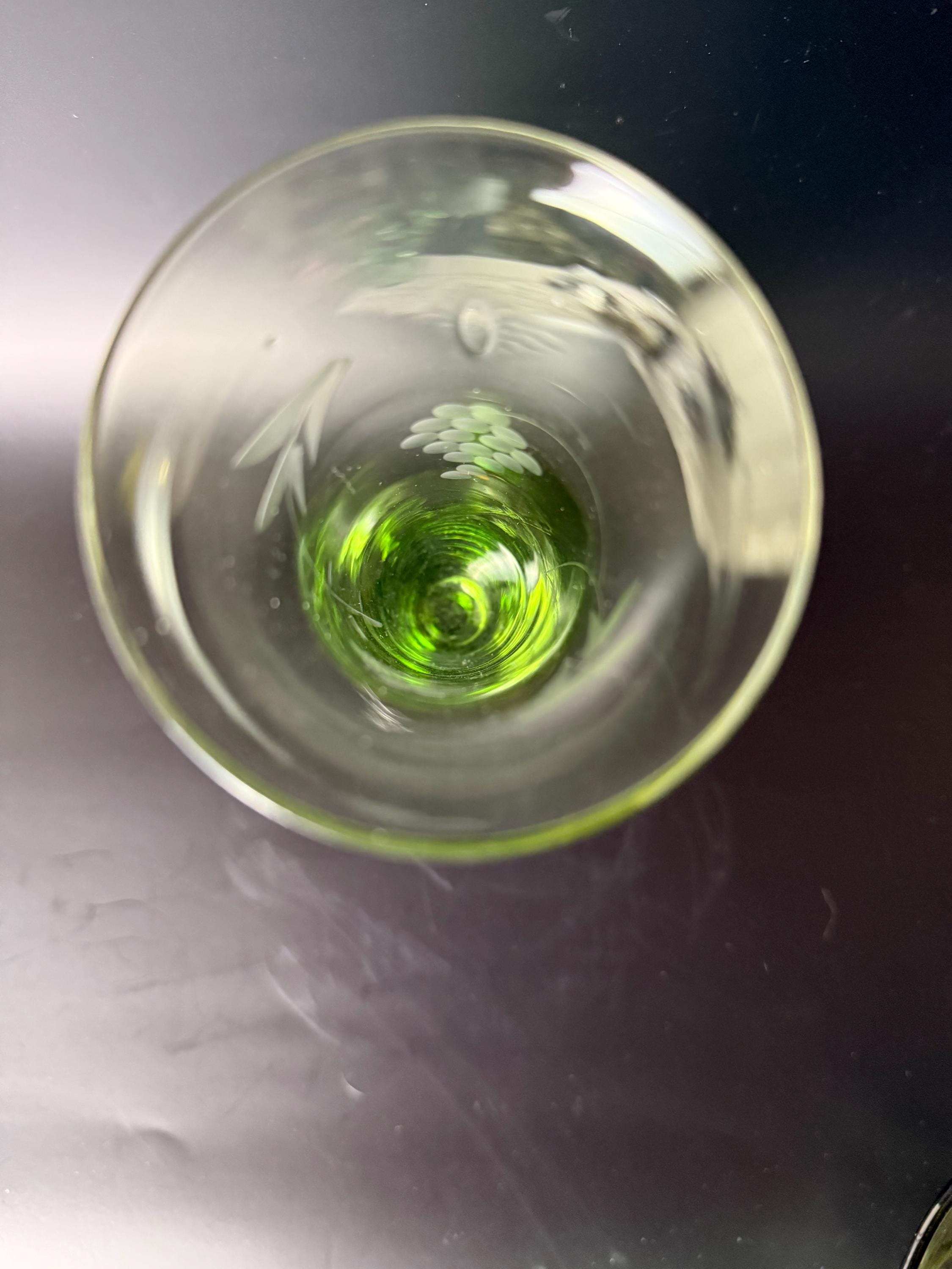 Anchor Hocking, founded in 1905, became a household name in affordable, stylish glassware throughout the mid-20th century. Their designs often featured etched motifs like grapes and florals, reflecting popular tastes of the era. Green glass in particular was a favorite in mid-century homes, beloved for its fresh, lively color.
