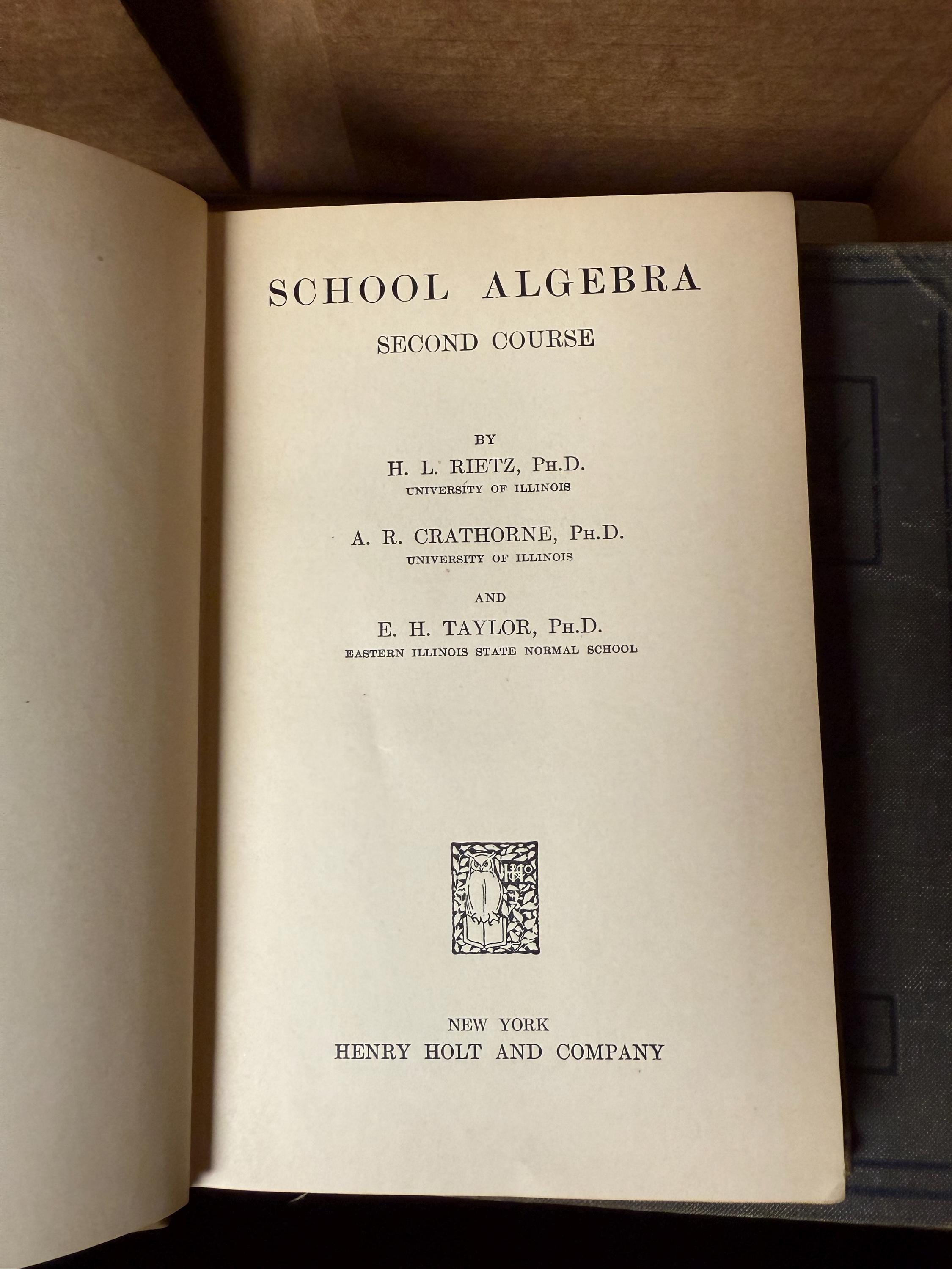 • School Algebra, Second Course – Rietz, Crathorne, & Taylor