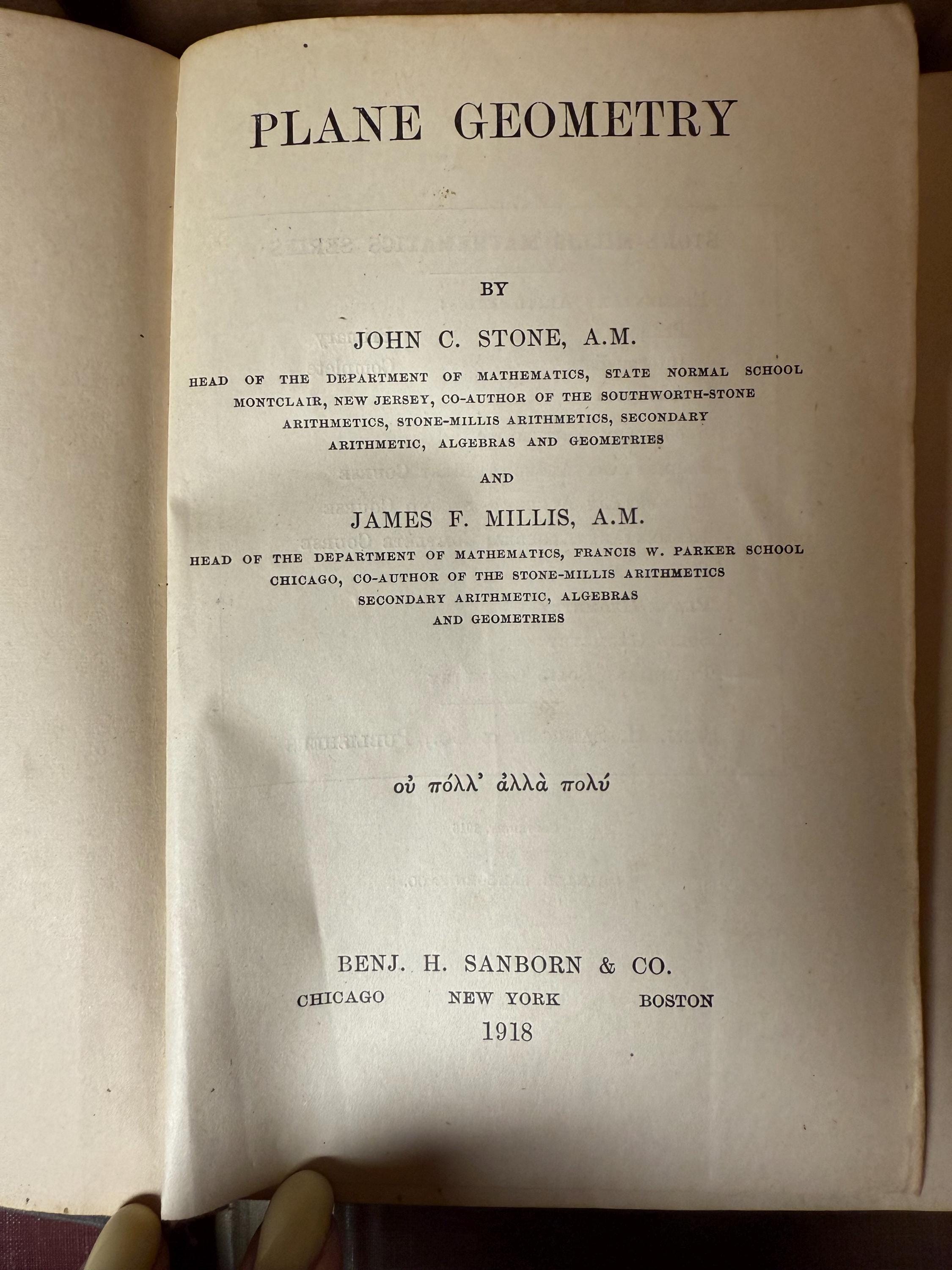 • Plane Geometry (2 editions, different publishers)