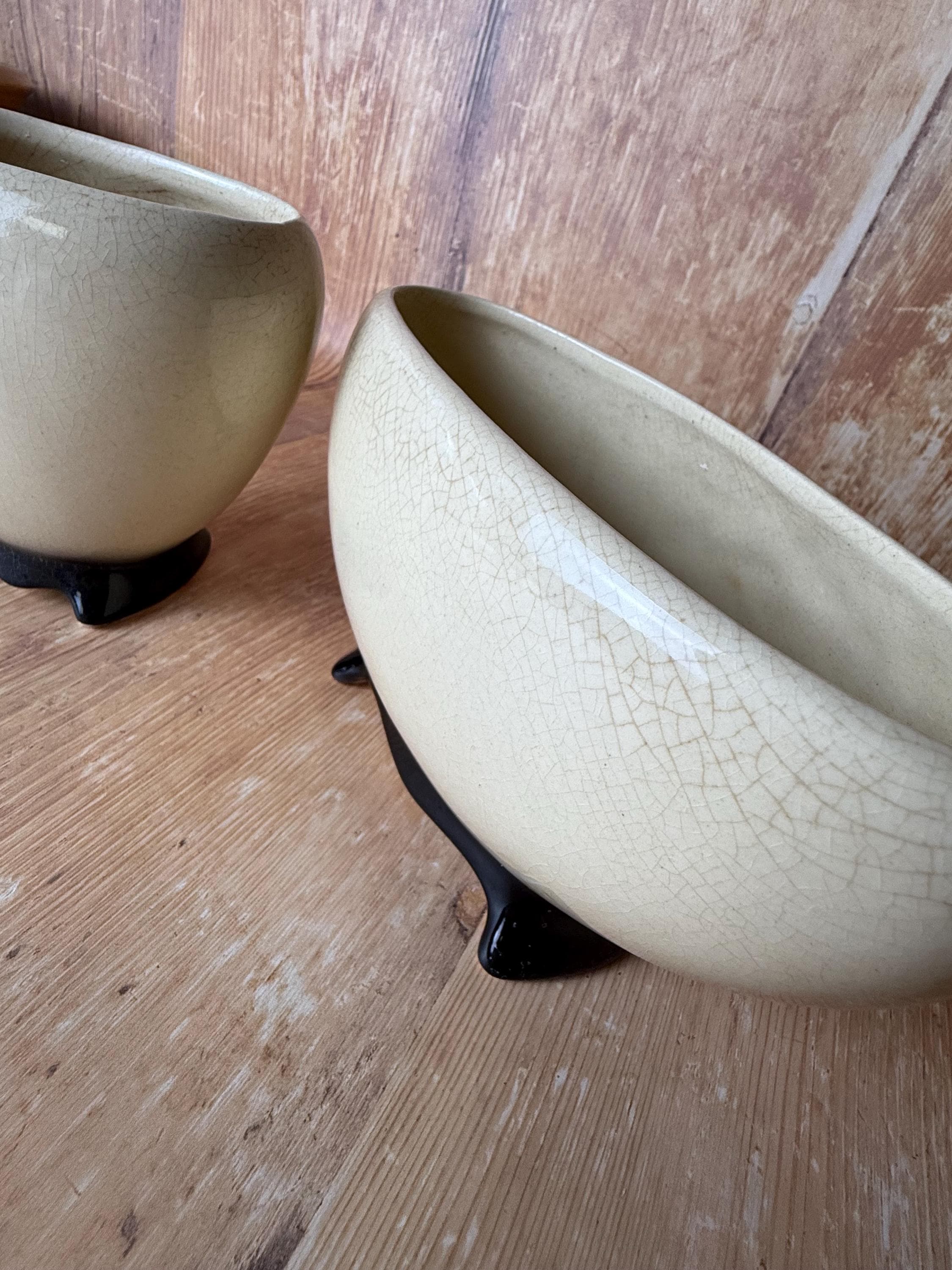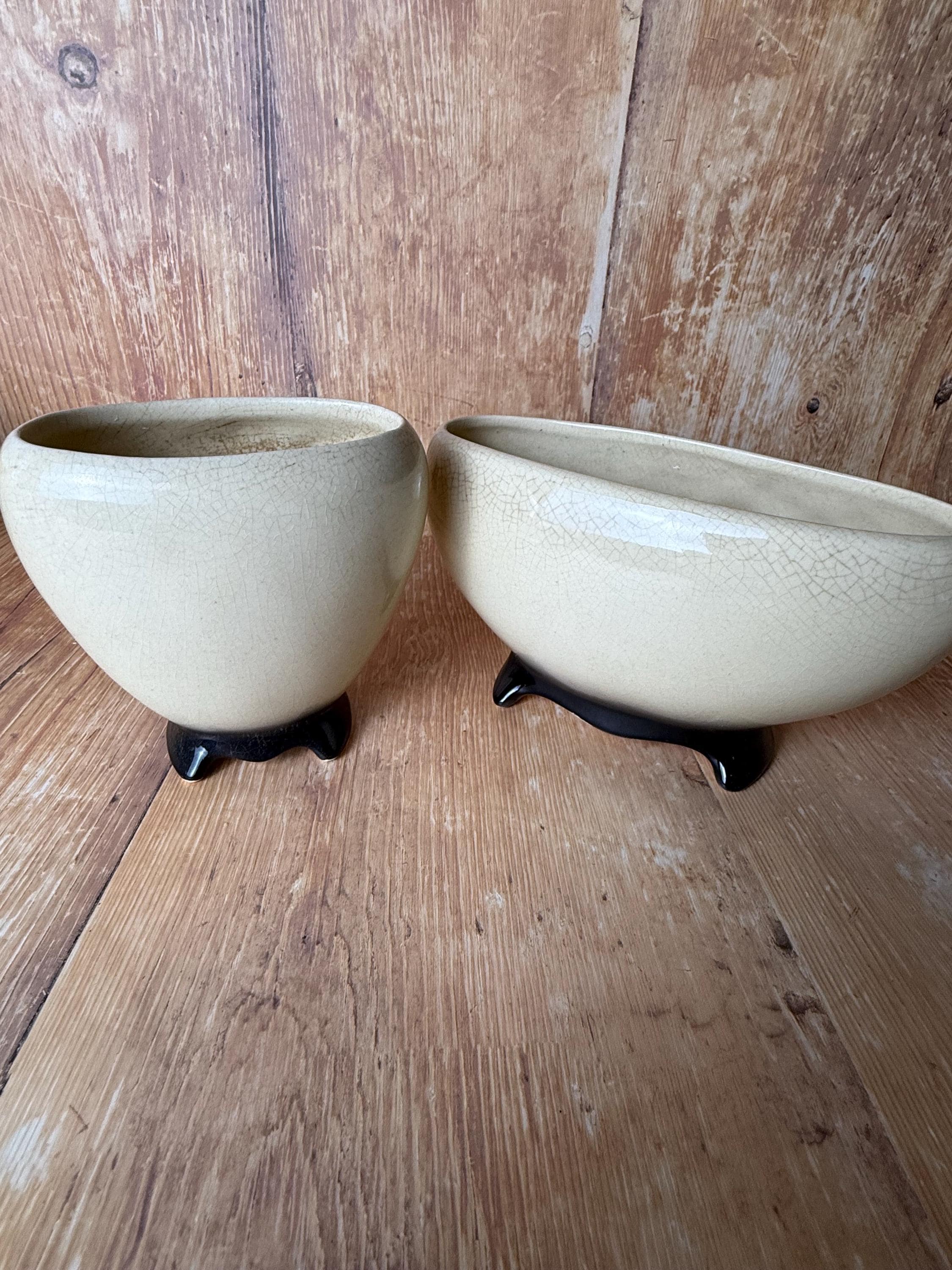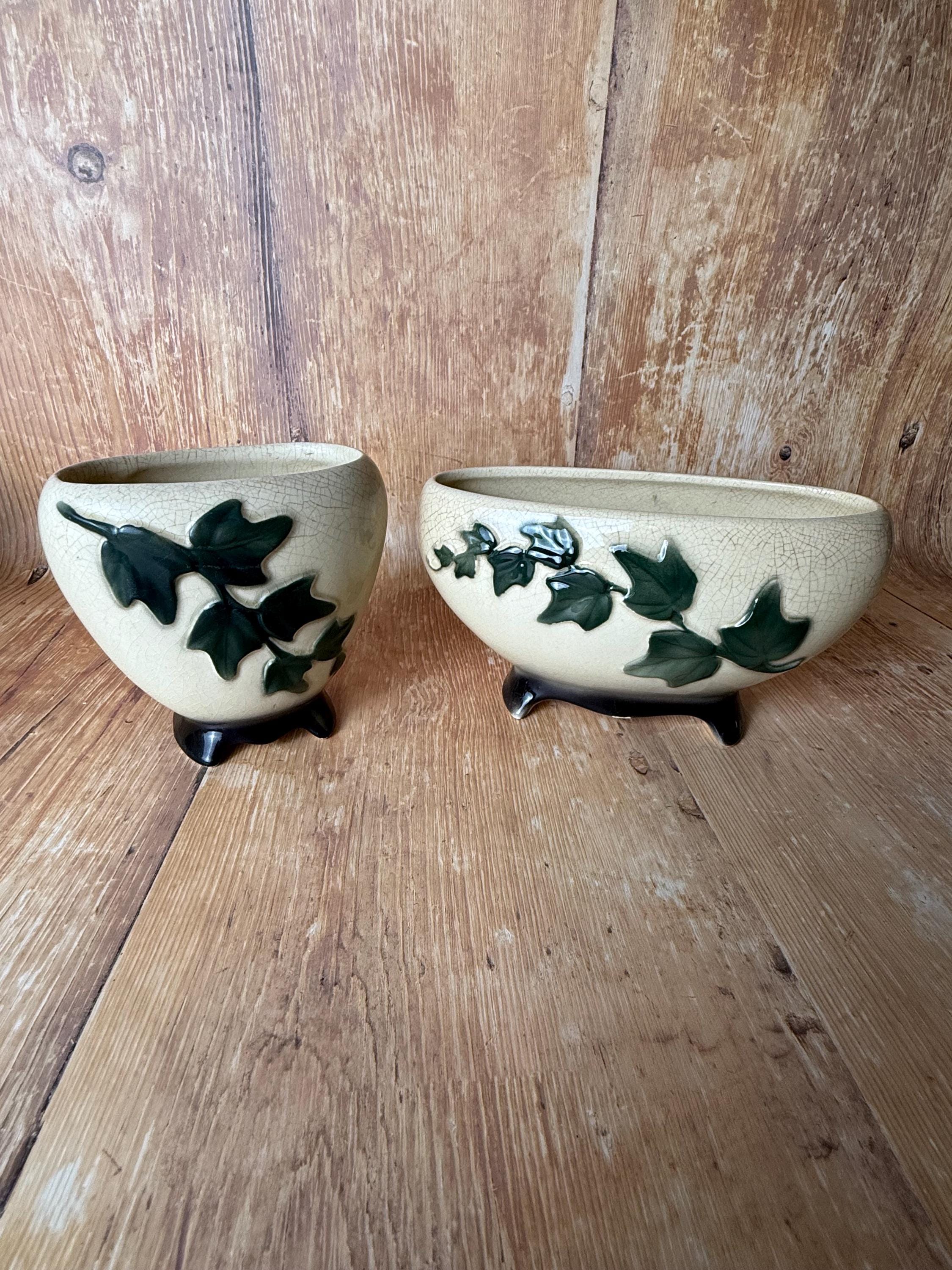 I couldn’t resist the organic, sculptural quality of these ivy planters. They capture that sweet spot between rustic charm and mid-century design — warm, homey, and quietly elegant. The crazing tells a story, showing their decades of life and love, which is exactly what I look for when curating for my shop.