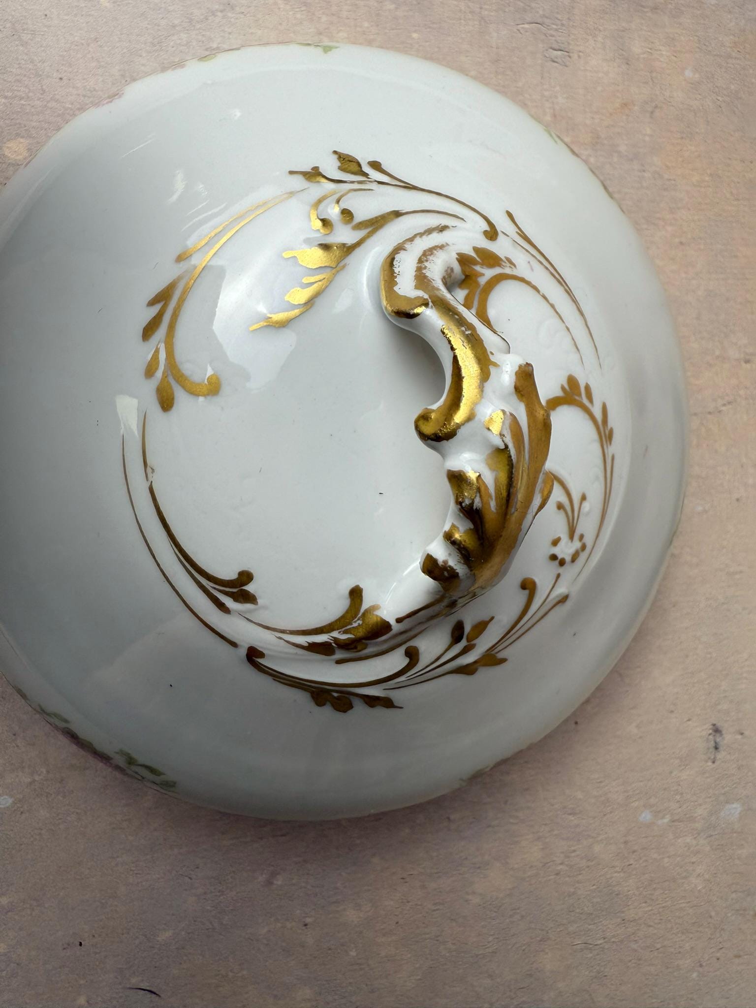 Limoges porcelain, produced in the famed region of Limoges, France, has been celebrated for its luminous white body and fine hand-painted detail since the 18th century. Charles Field Haviland was among the most prominent manufacturers, creating elegant wares for export to elite European and American markets. Covered butter dishes like this one were prized table pieces during the Victorian and Edwardian periods, blending beauty with function in the height of fine dining.