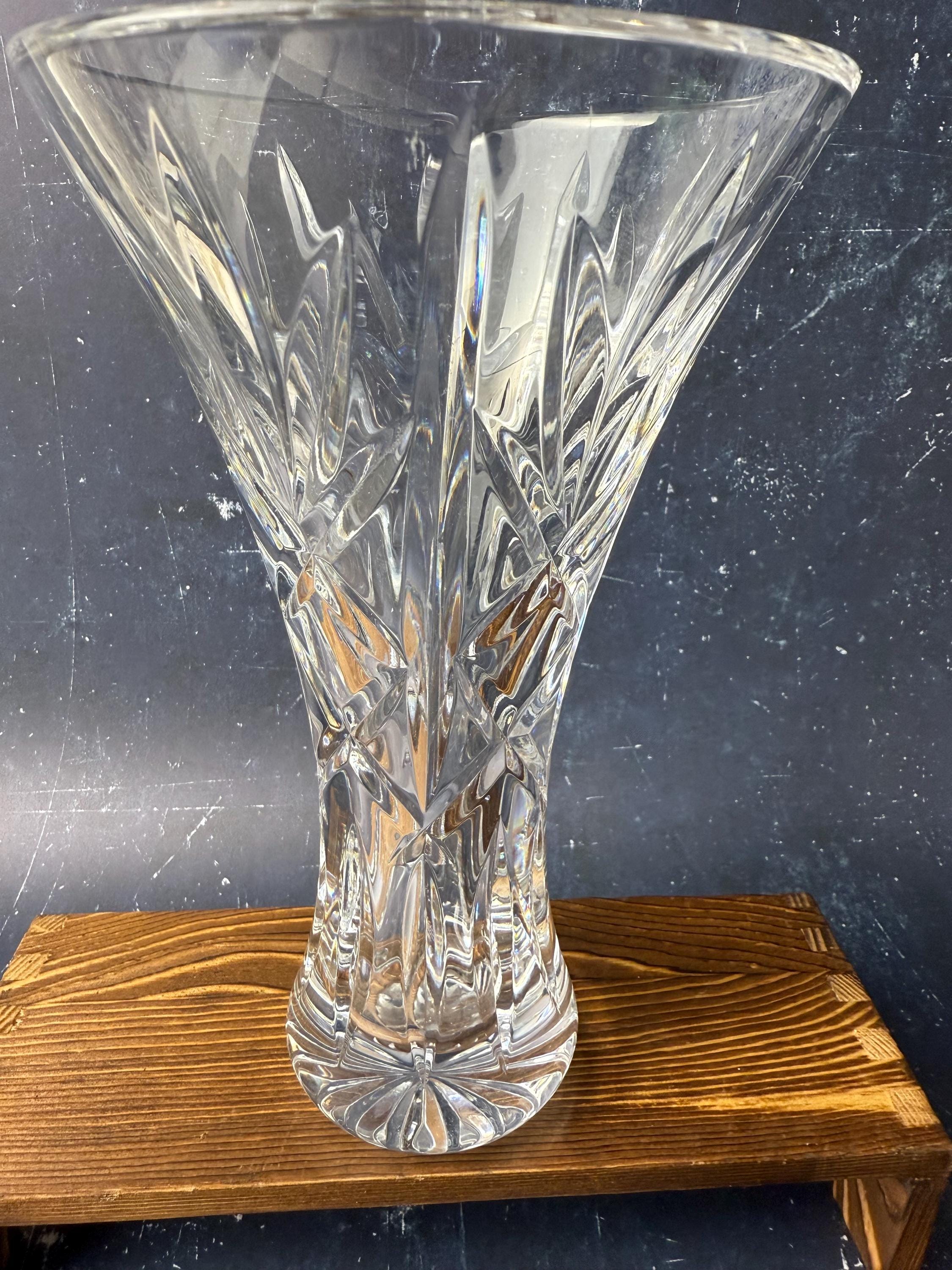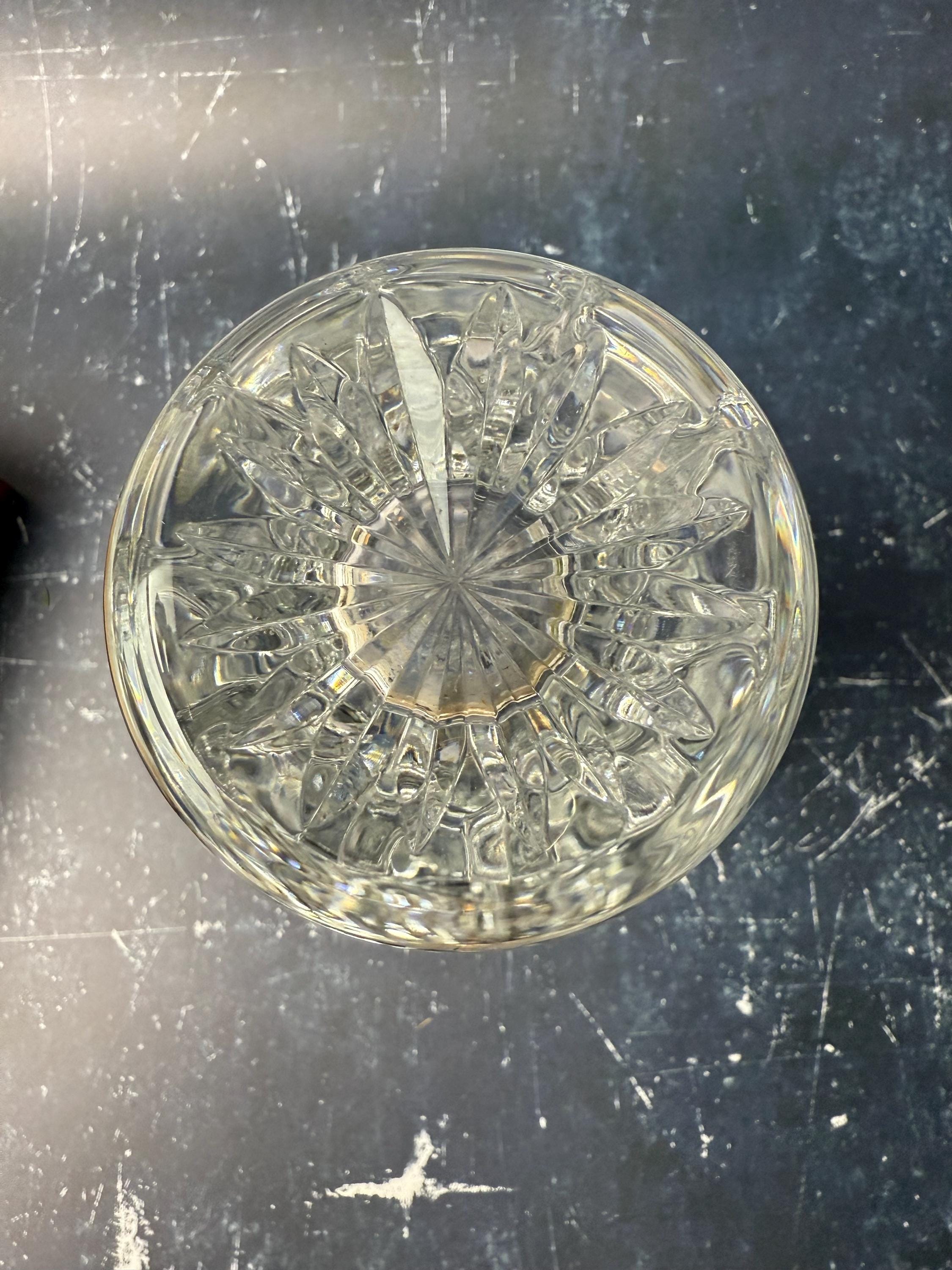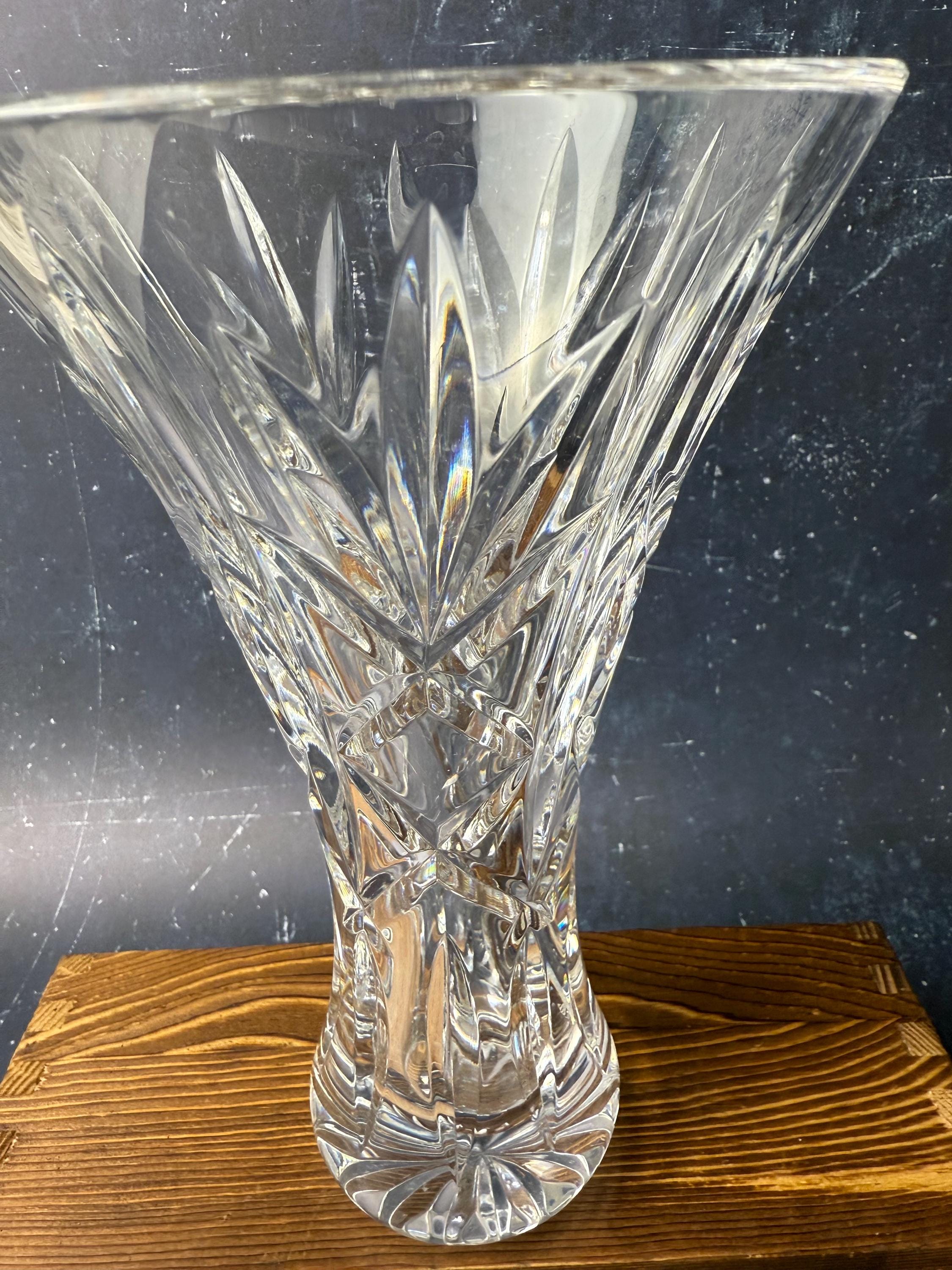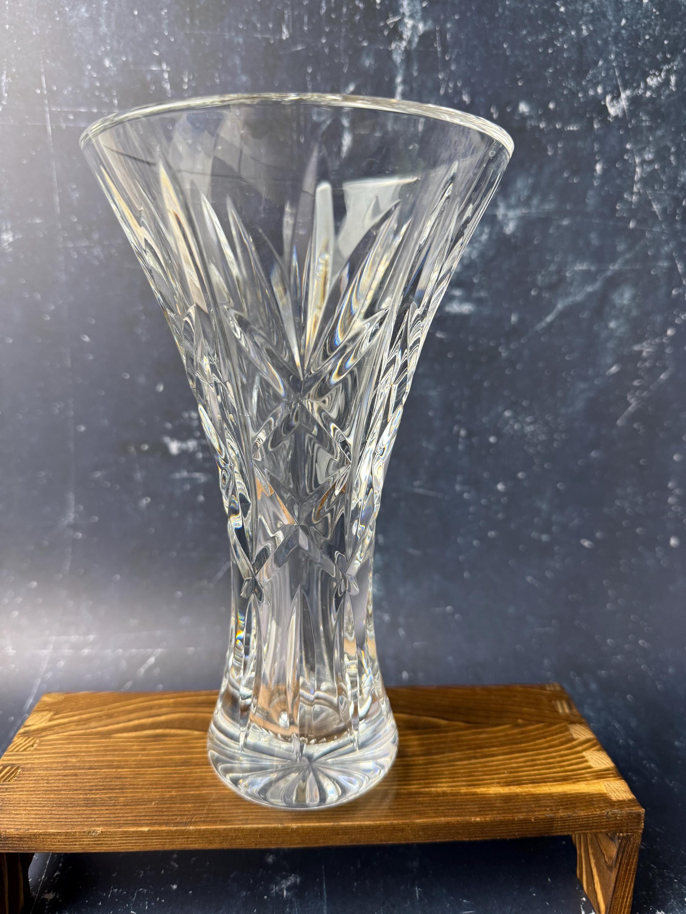 This exquisite 8” Waterford Crystal vase in the verified Kilrane pattern showcases the refined elegance and expert craftsmanship that defines the Waterford legacy. Featuring a sculpted flared silhouette, brilliant vertical wedge cuts, and Waterford’s signature crisscross diamond motif, this piece sparkles with sophistication from every angle.