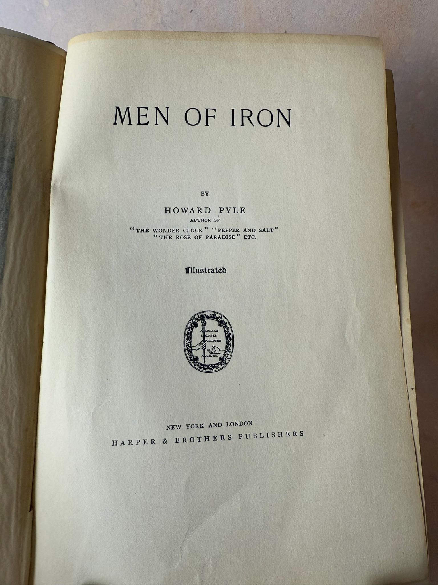 A striking early edition of Men of Iron by Howard Pyle — the legendary American illustrator and storyteller behind The Merry Adventures of Robin Hood and Otto of the Silver Hand.