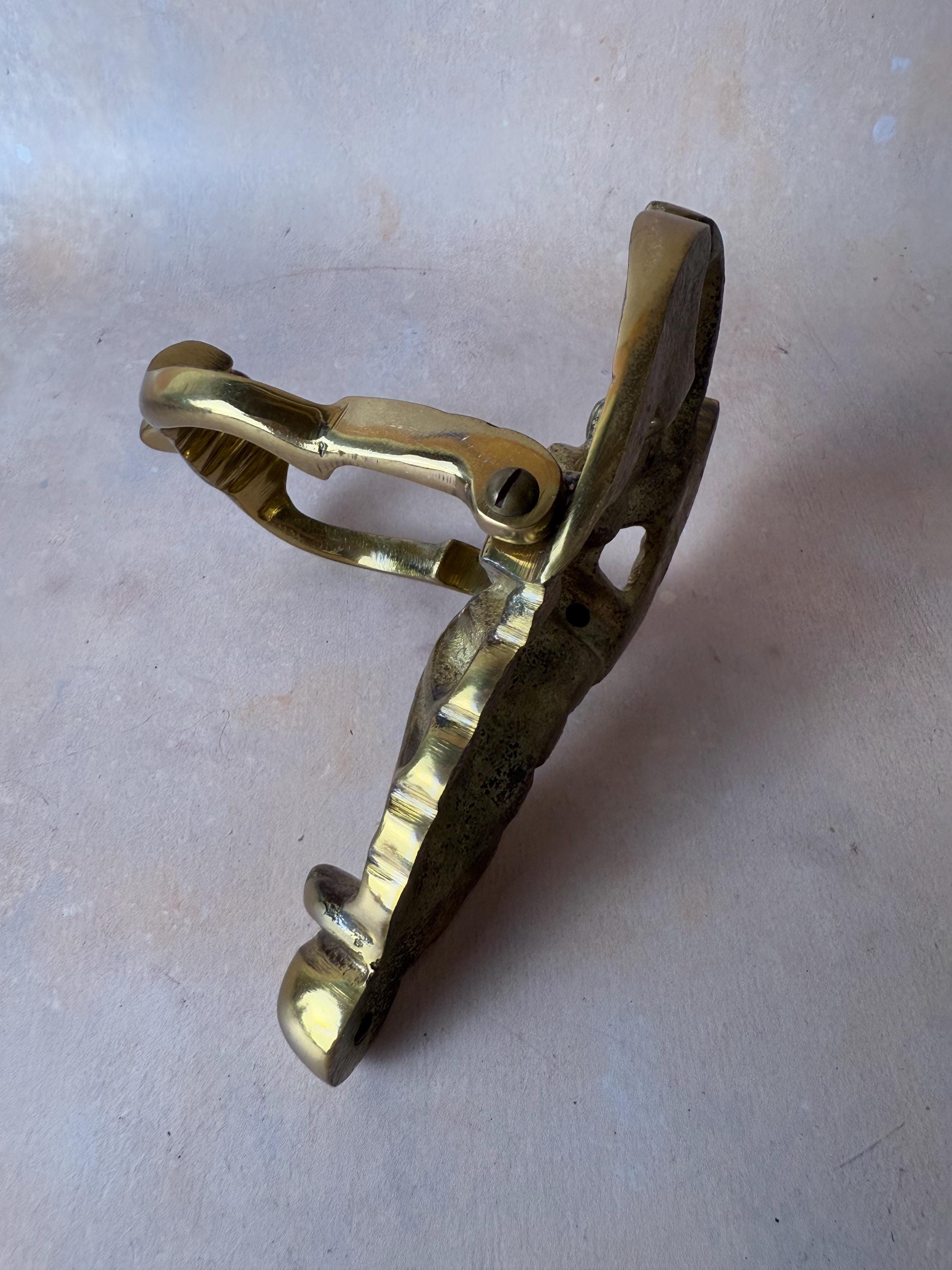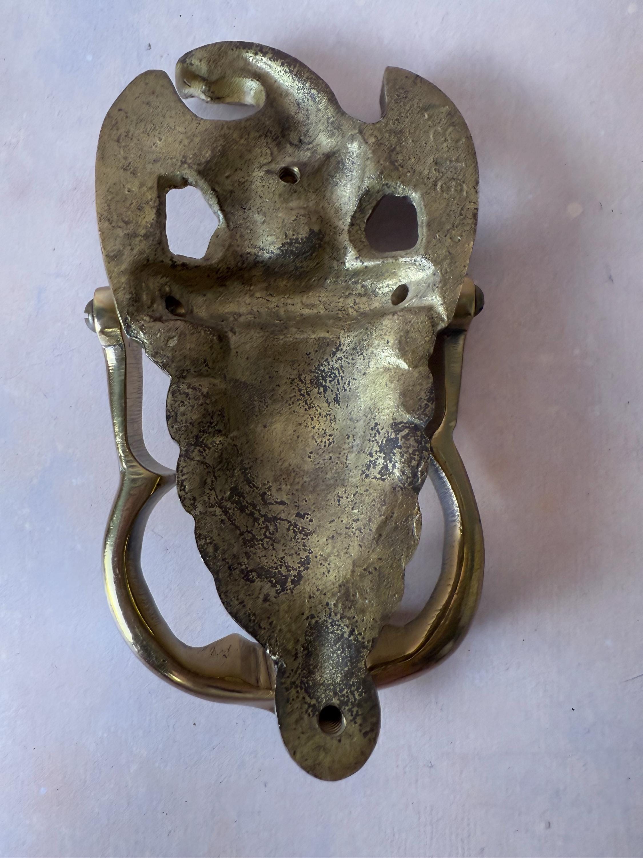 This vintage solid brass door knocker features a majestic eagle perched above a decorative shield. A timeless nod to American craftsmanship, it’s heavy, detailed, and ready to make a statement on your front door or as part of a gallery wall display.