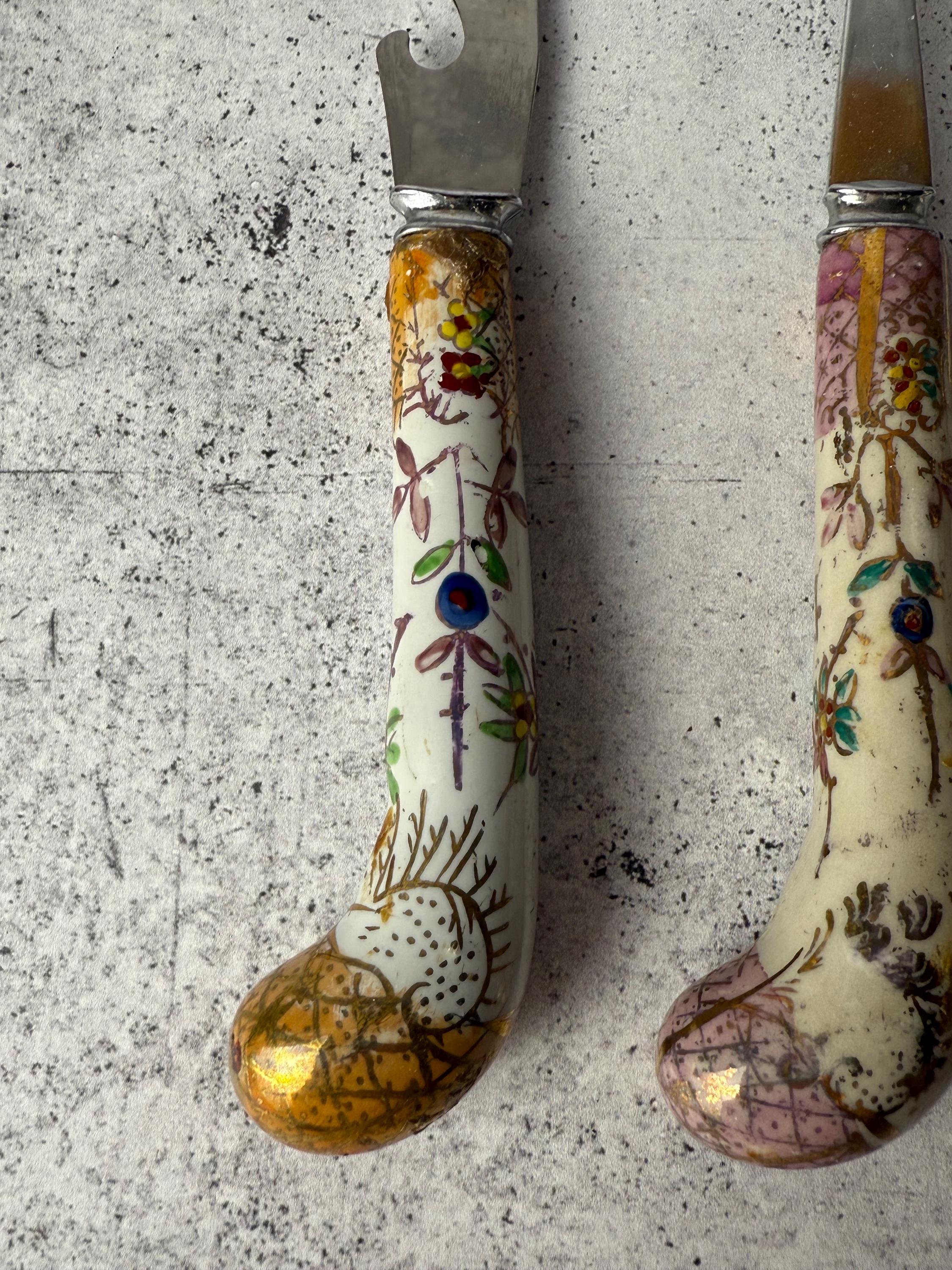 Handles: Hand-painted porcelain with floral and gilt motifs