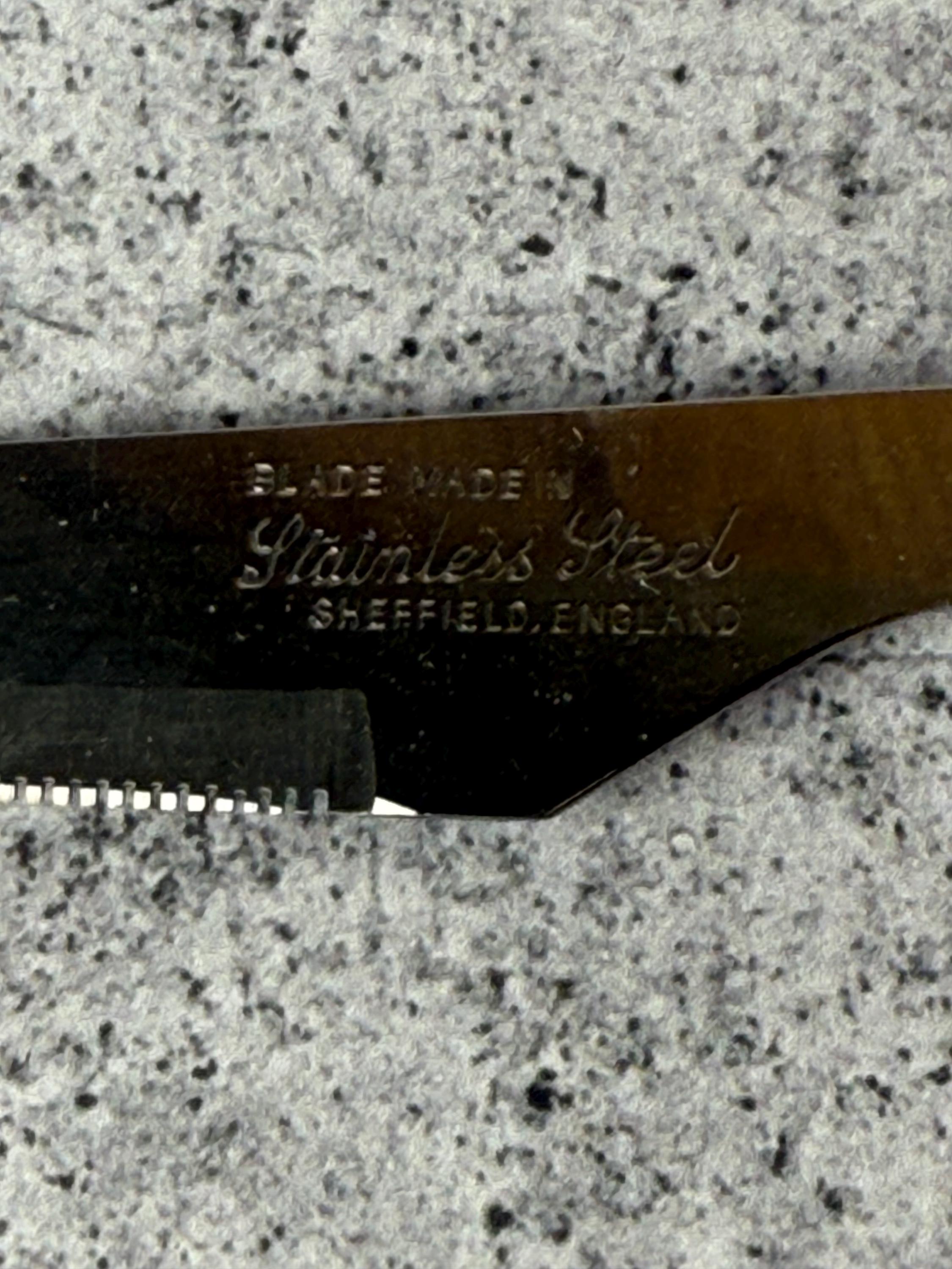 The handles have a unique cane-hook curve that adds both charm and comfort when serving. The stainless steel blades and tines are stamped “Sheffield England,” a hallmark of quality known the world over. Whether you're hosting an afternoon tea or wine-and-cheese night, this set brings a touch of timeless sophistication to the table.