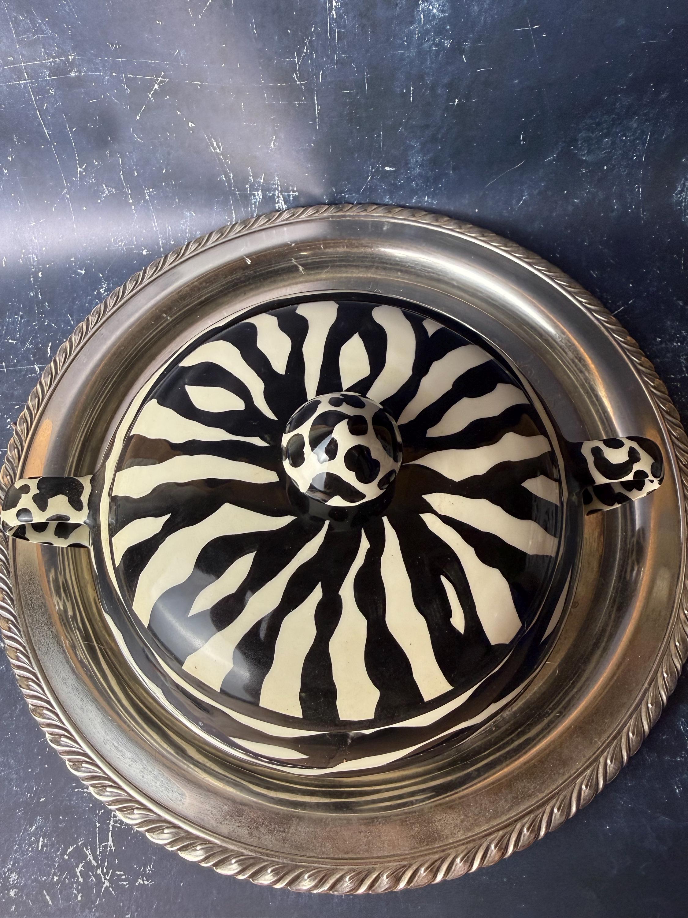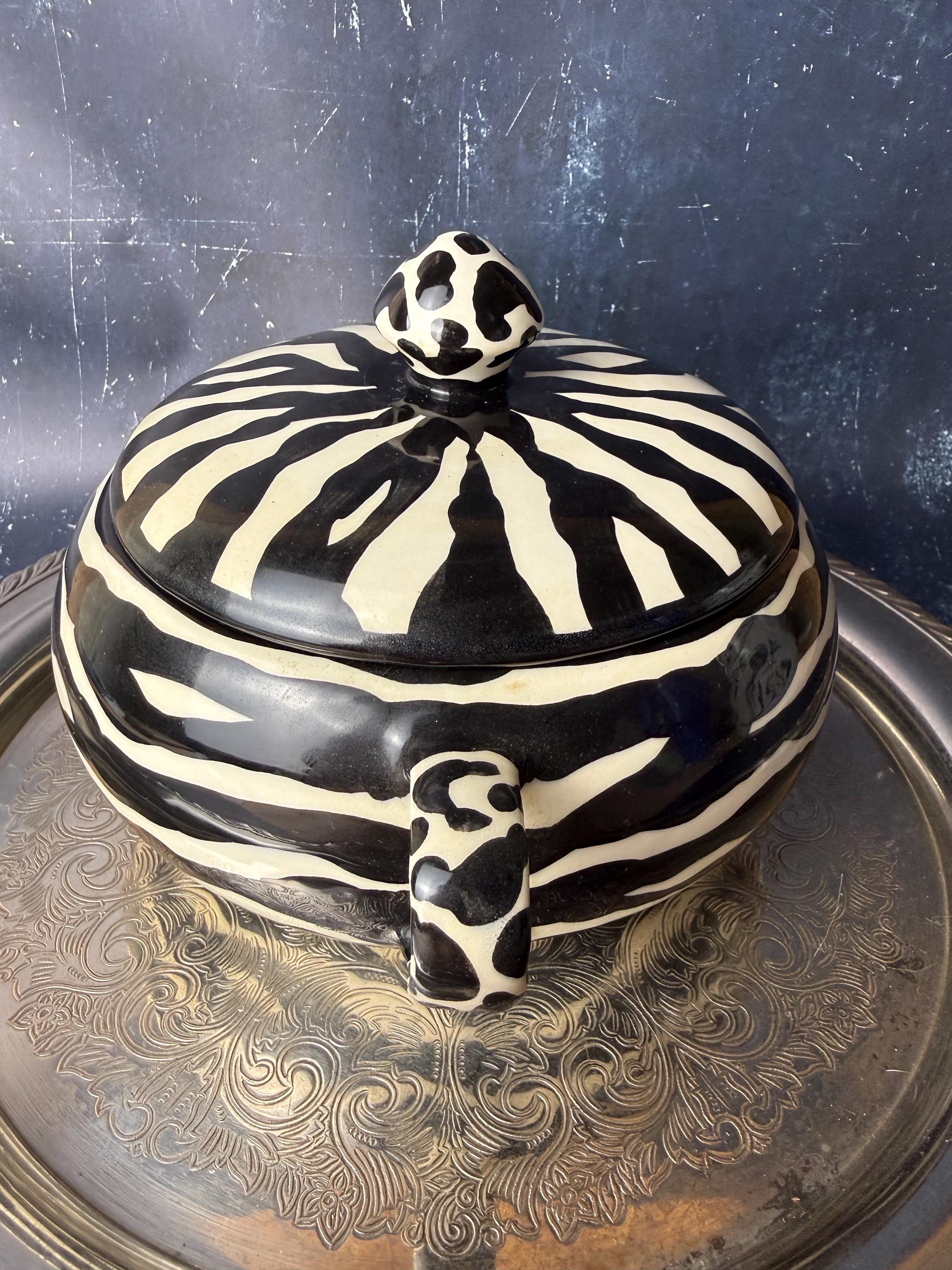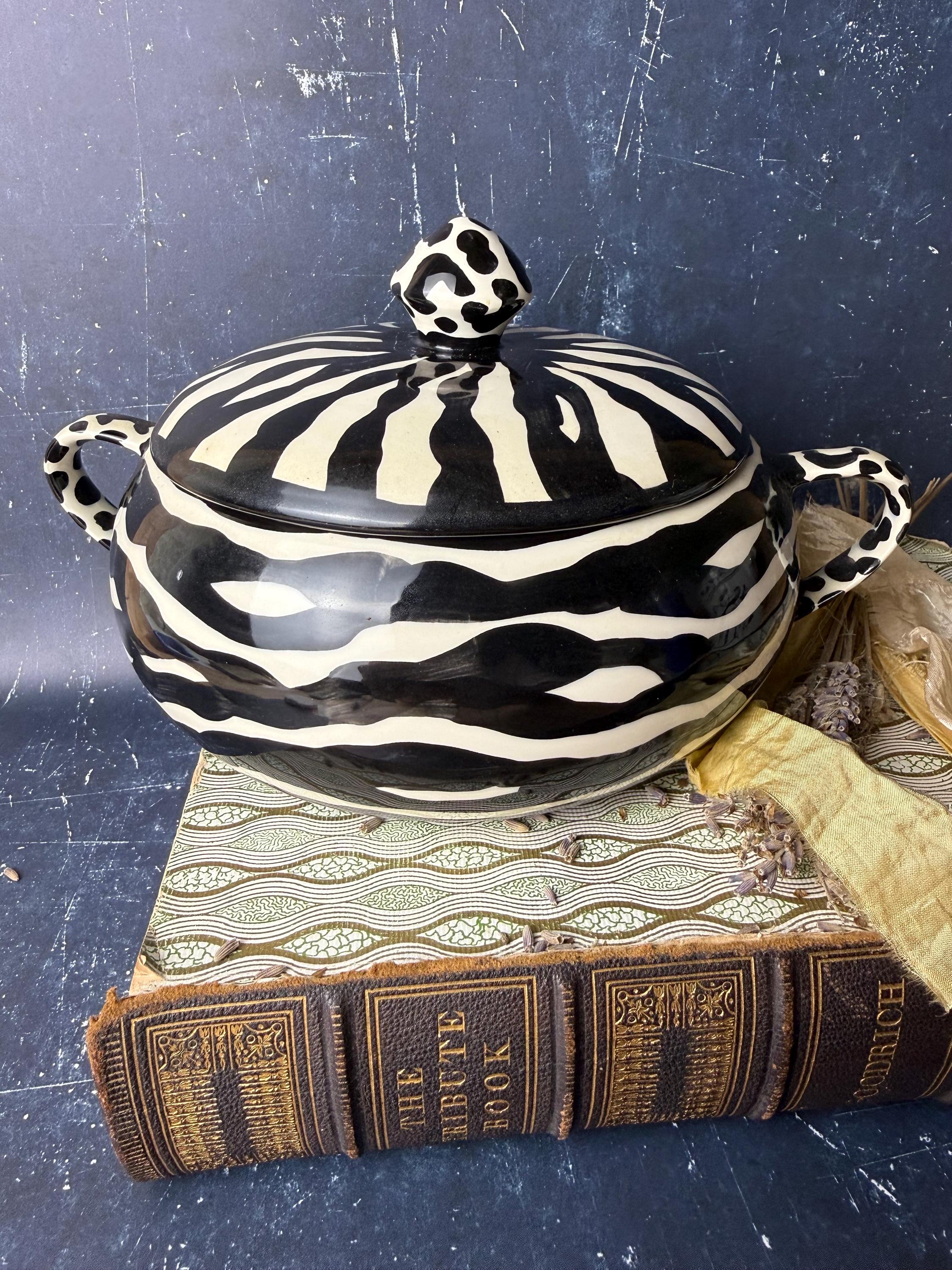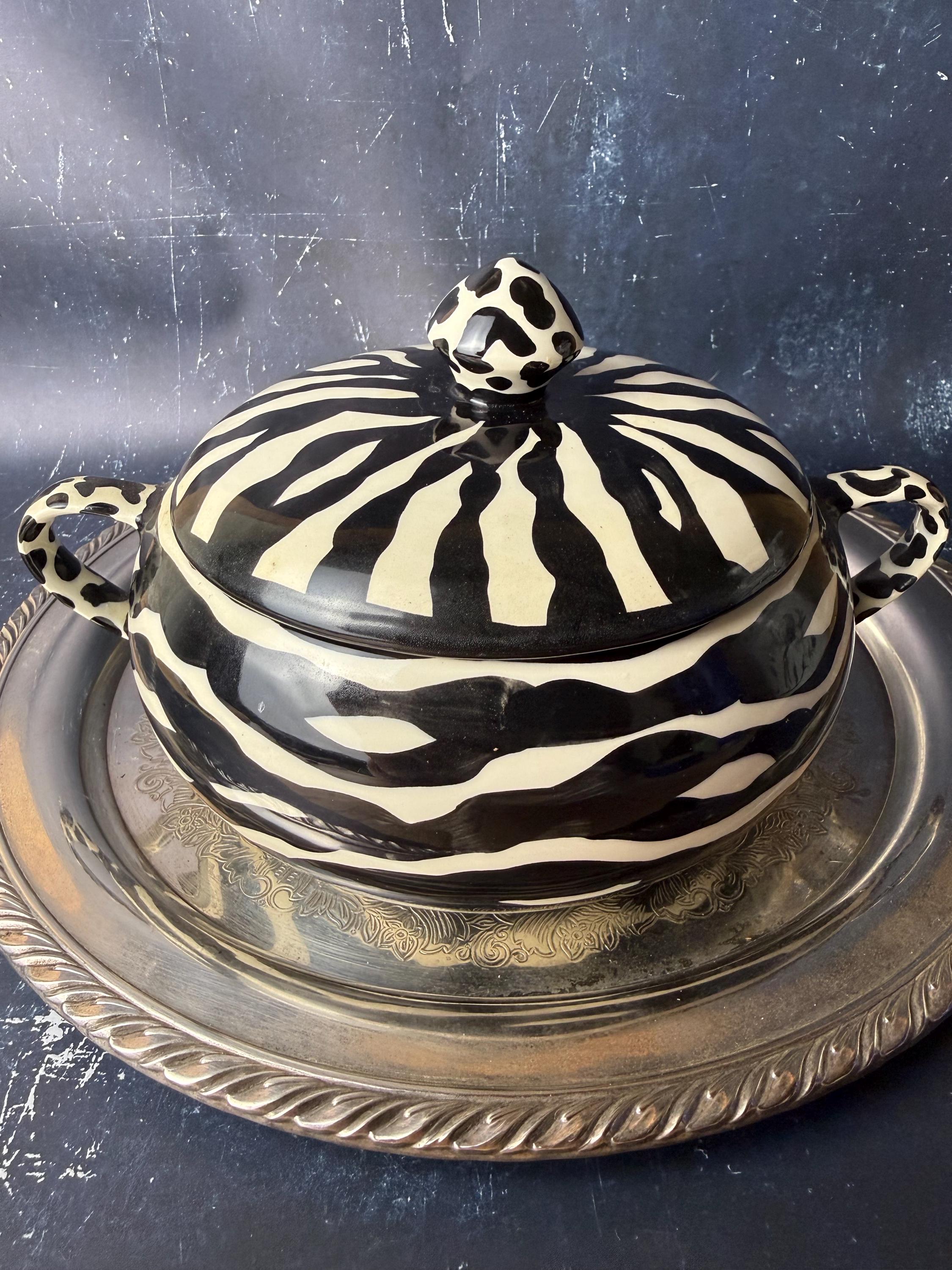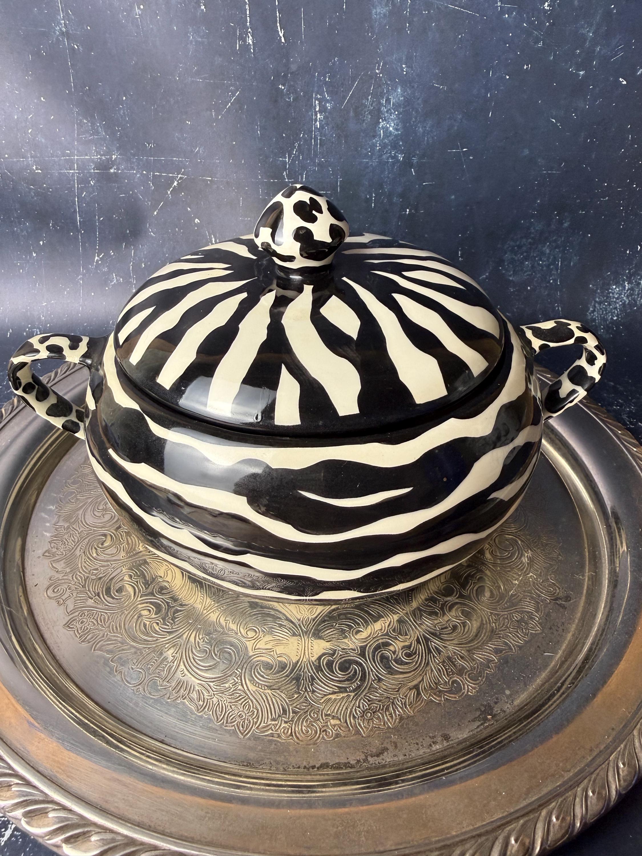 • Studio pottery with hand-painted zebra pattern
