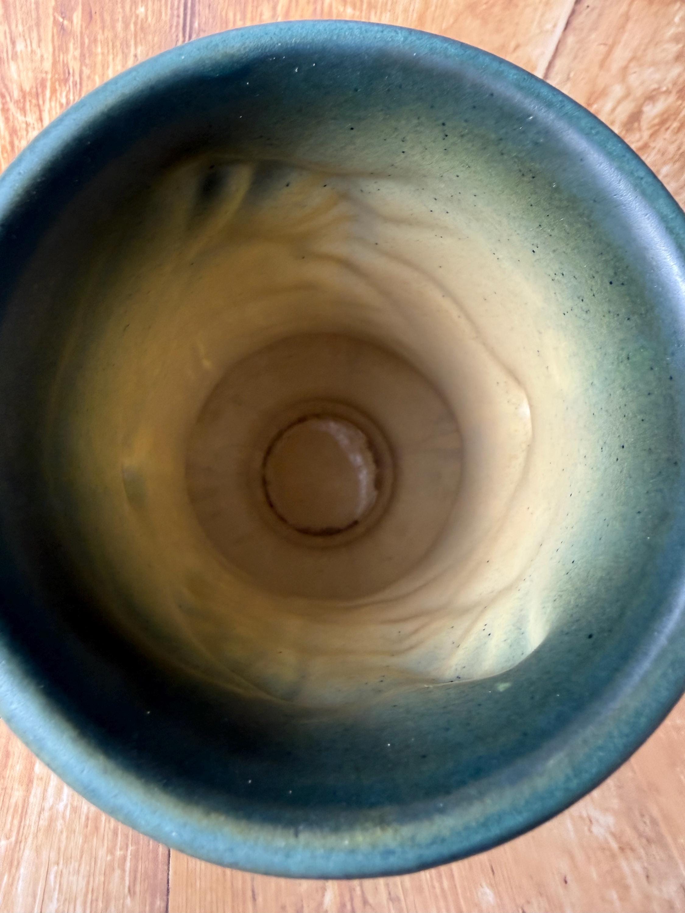 Roseville Pottery was one of the leading names in American art pottery, known for its naturalistic designs and richly textured glazes. The Freesia line, introduced in 1945, captured the delicate form of the freesia flower against gently rippling backgrounds. Pieces like this one celebrate craftsmanship, artistry, and a deep appreciation for botanical beauty.